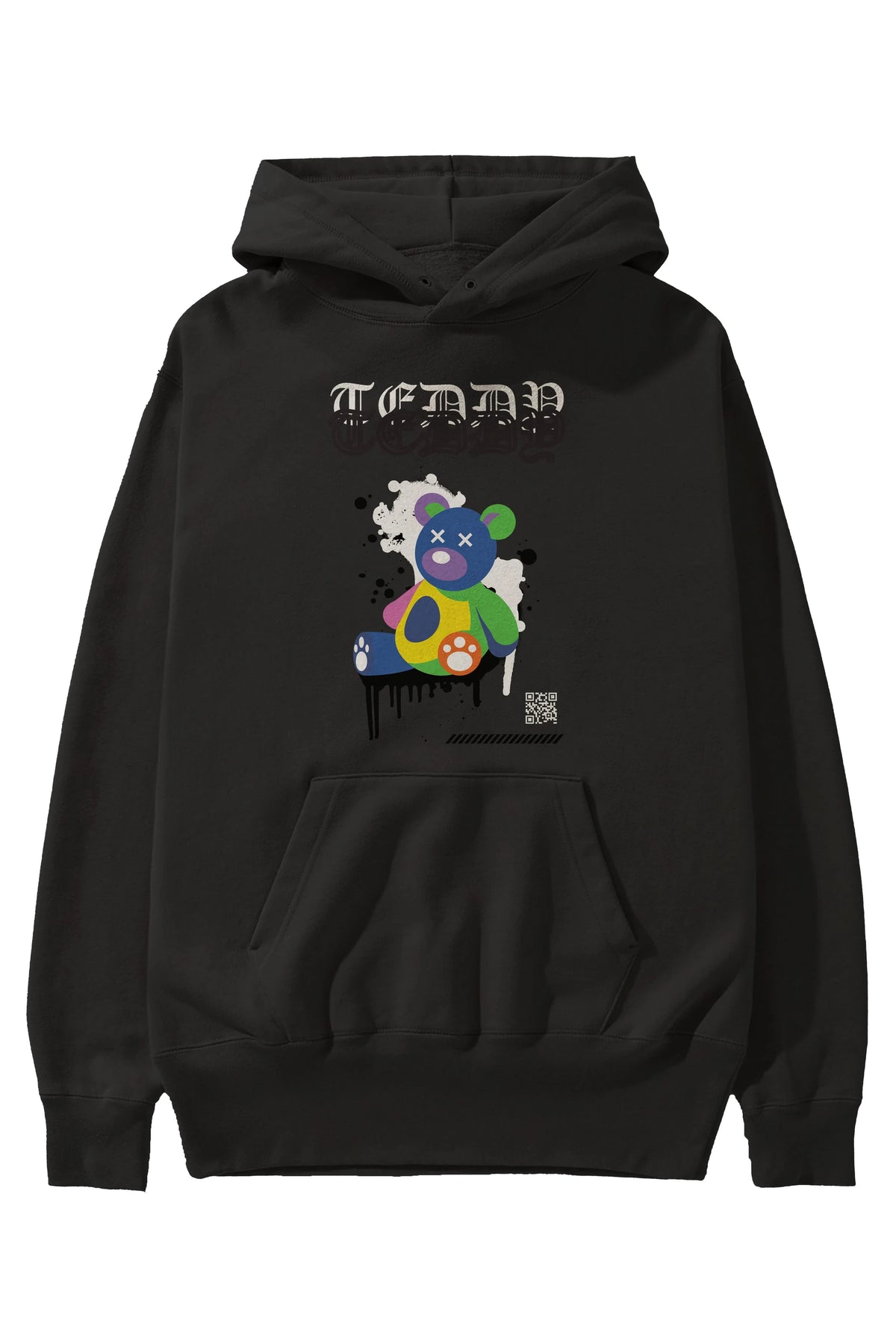 Teddy Bear Ön Baskılı Hoodie Oversize Kapüşonlu Sweatshirt Erkek Kadın Unisex