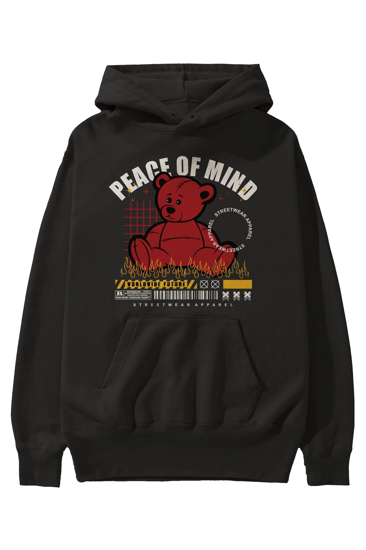Teddy Bear Peace of Mind Ön Baskılı Hoodie Oversize Kapüşonlu Sweatshirt Erkek Kadın Unisex