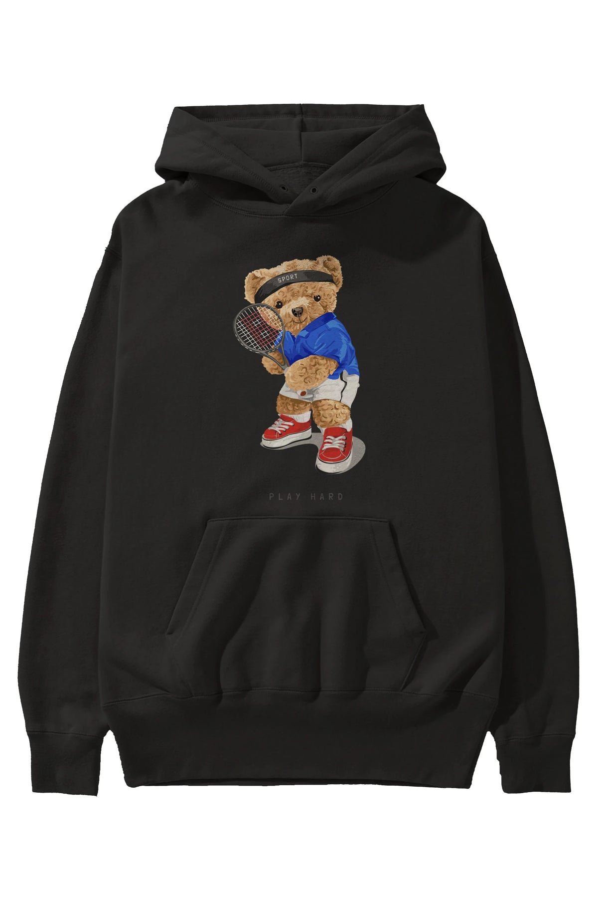 Teddy Bear Play Hard Ön Baskılı Hoodie Oversize Kapüşonlu Sweatshirt Erkek Kadın Unisex