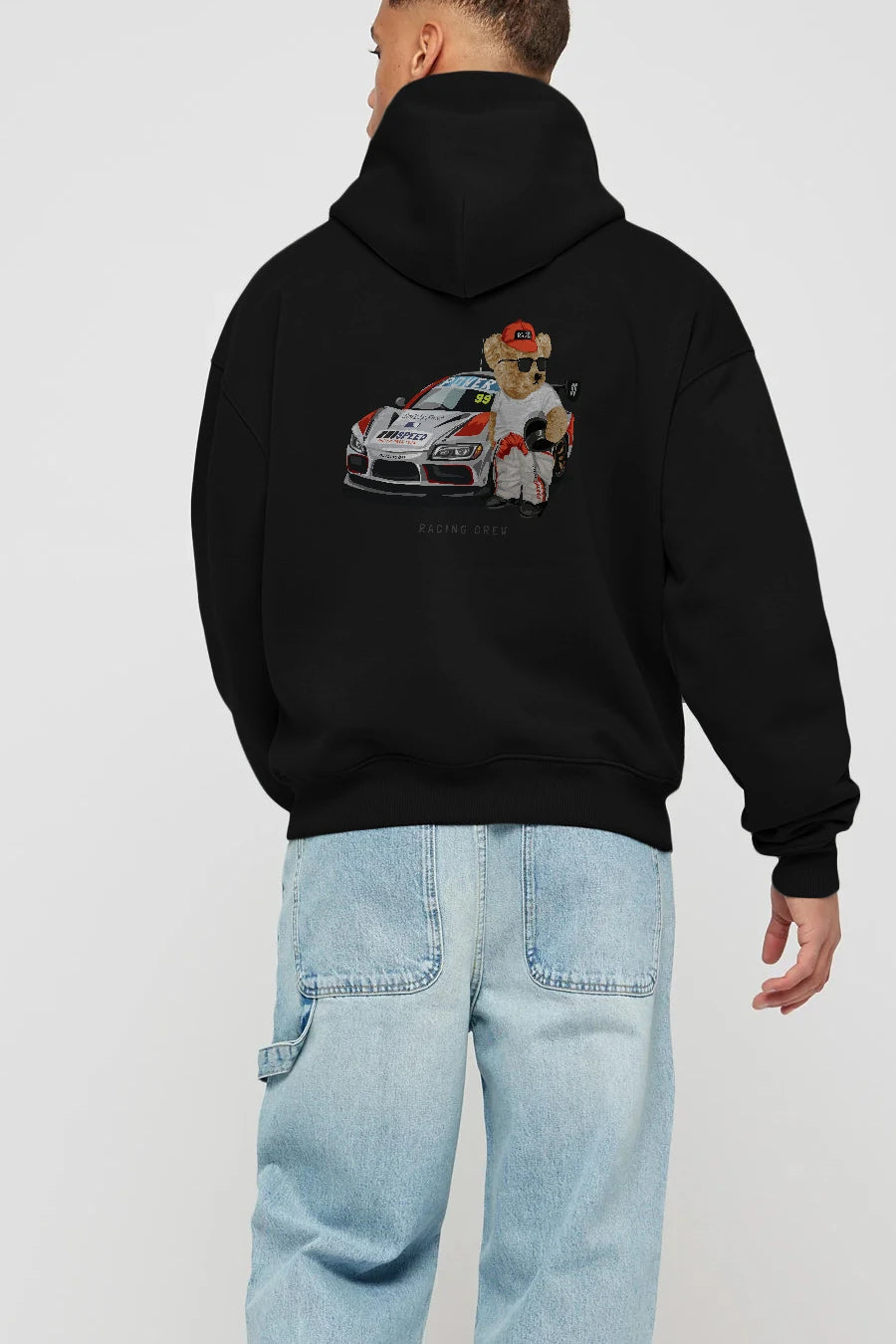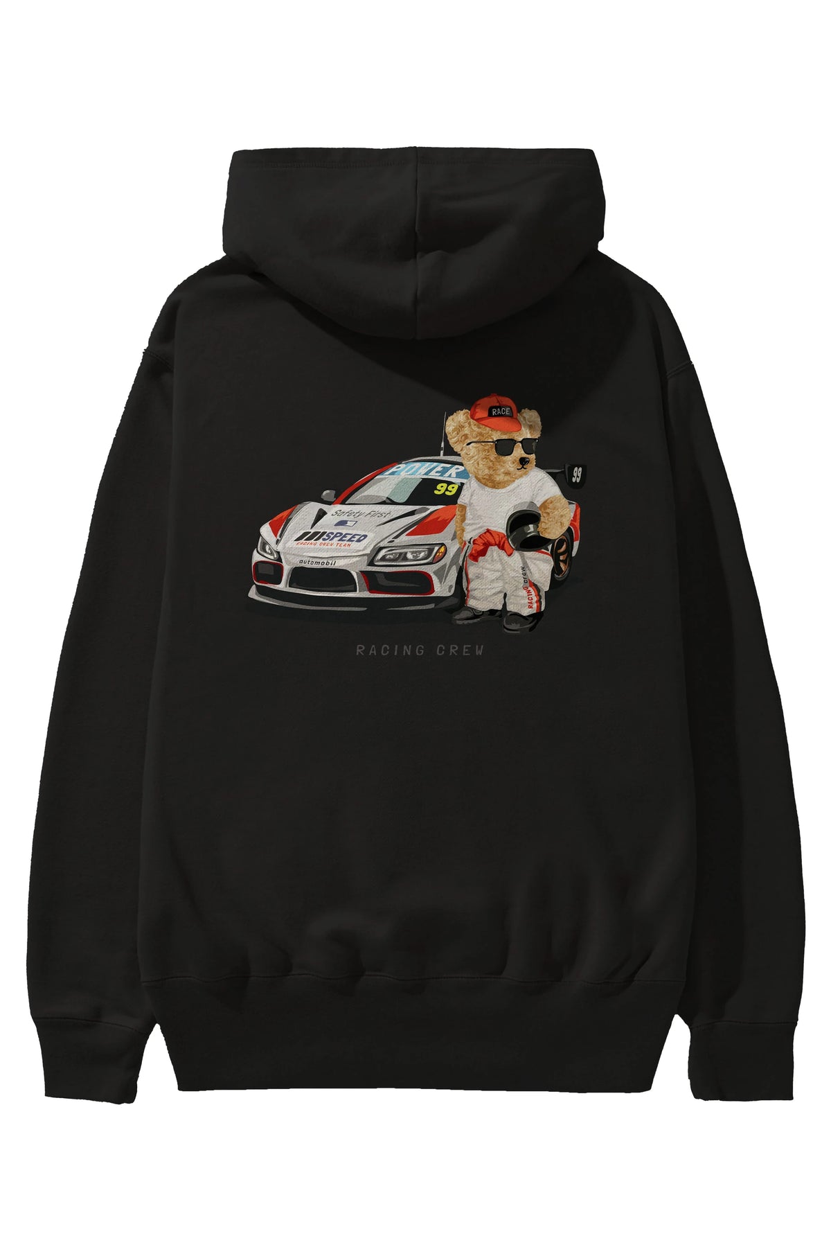 Teddy Bear Racing Crew Arka Baskılı Hoodie Oversize Kapüşonlu Sweatshirt Erkek Kadın Unisex