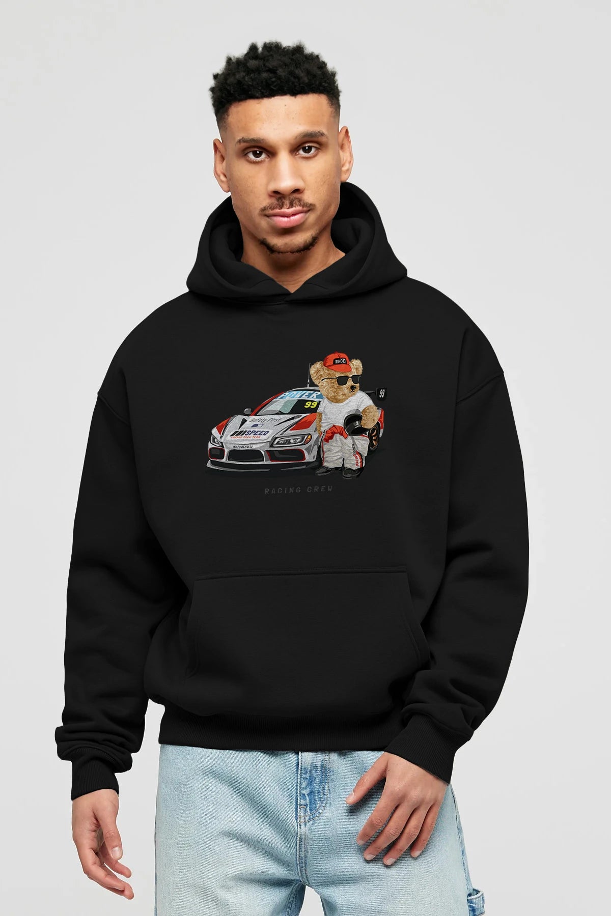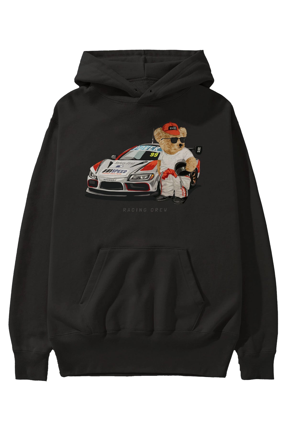 Teddy Bear Racing Crew Ön Baskılı Hoodie Oversize Kapüşonlu Sweatshirt Erkek Kadın Unisex