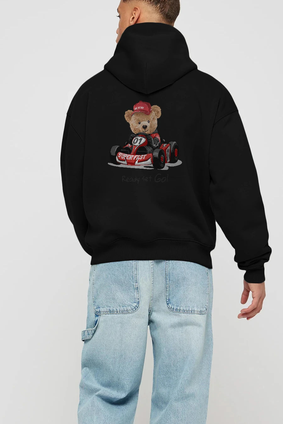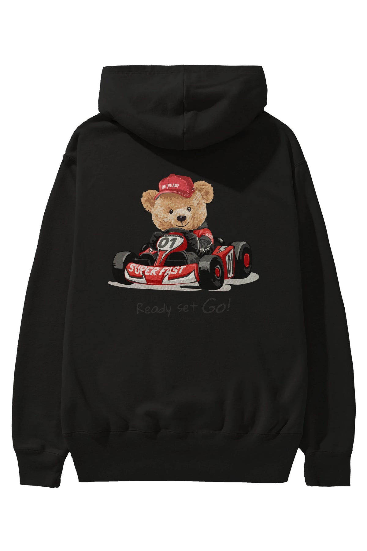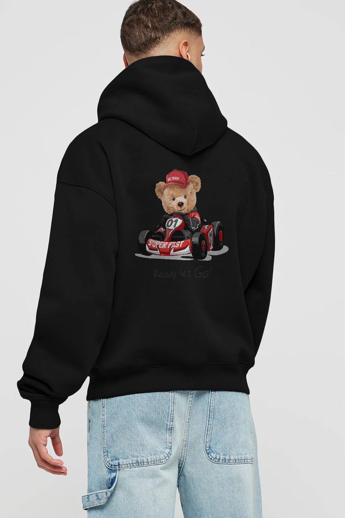 Teddy Bear Ready Set Go Arka Baskılı Hoodie Oversize Kapüşonlu Sweatshirt Erkek Kadın Unisex
