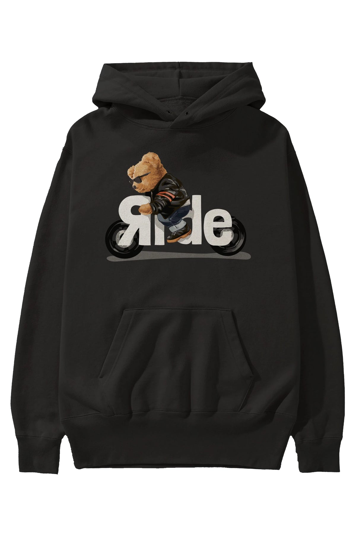 Teddy Bear Ride Ön Baskılı Hoodie Oversize Kapüşonlu Sweatshirt Erkek Kadın Unisex