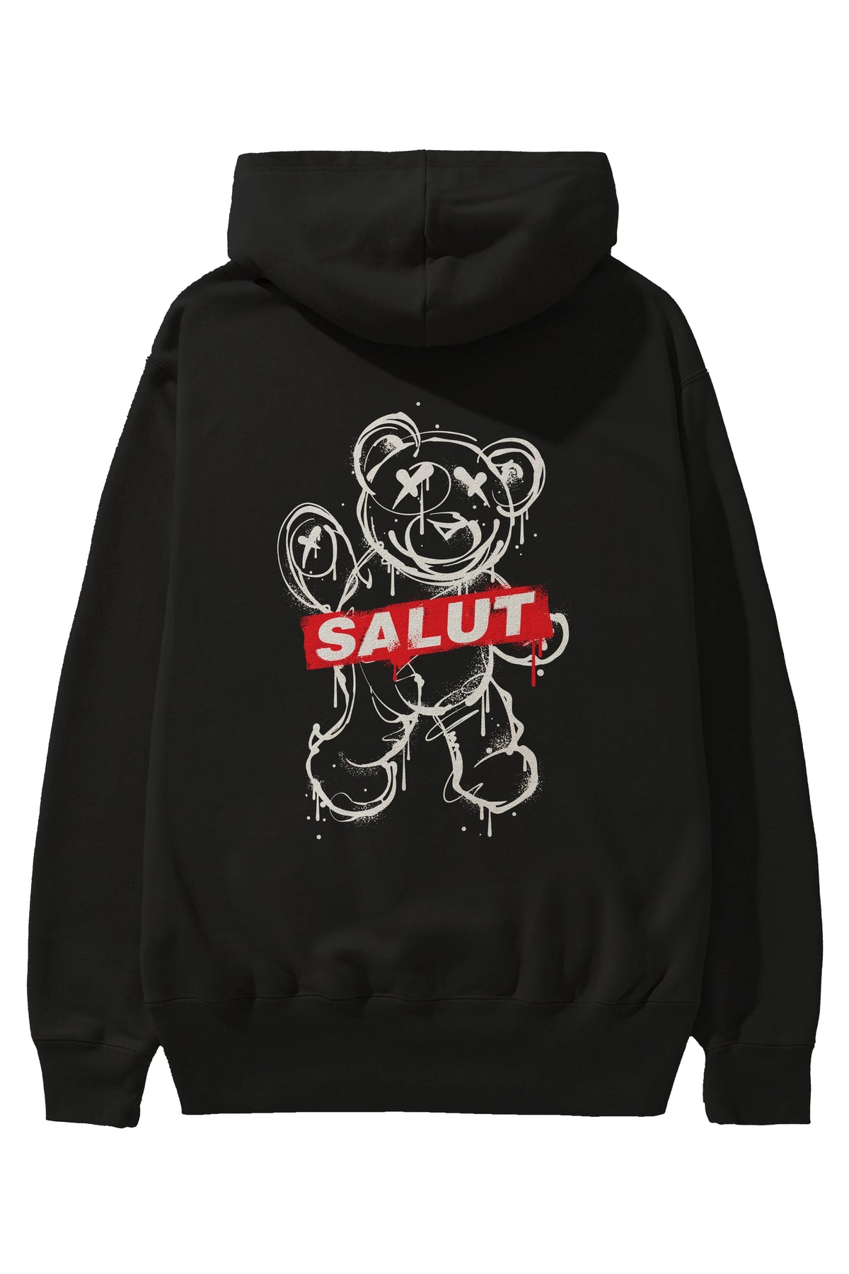 Teddy Bear Salut Arka Baskılı Hoodie Oversize Kapüşonlu Sweatshirt Erkek Kadın Unisex