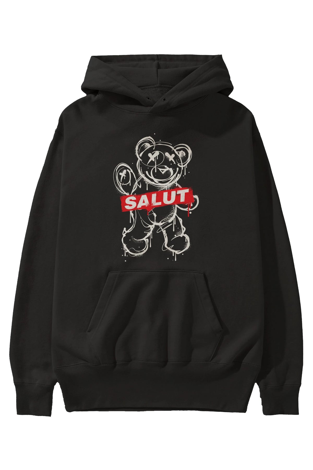 Teddy Bear Salut Ön Baskılı Hoodie Oversize Kapüşonlu Sweatshirt Erkek Kadın Unisex