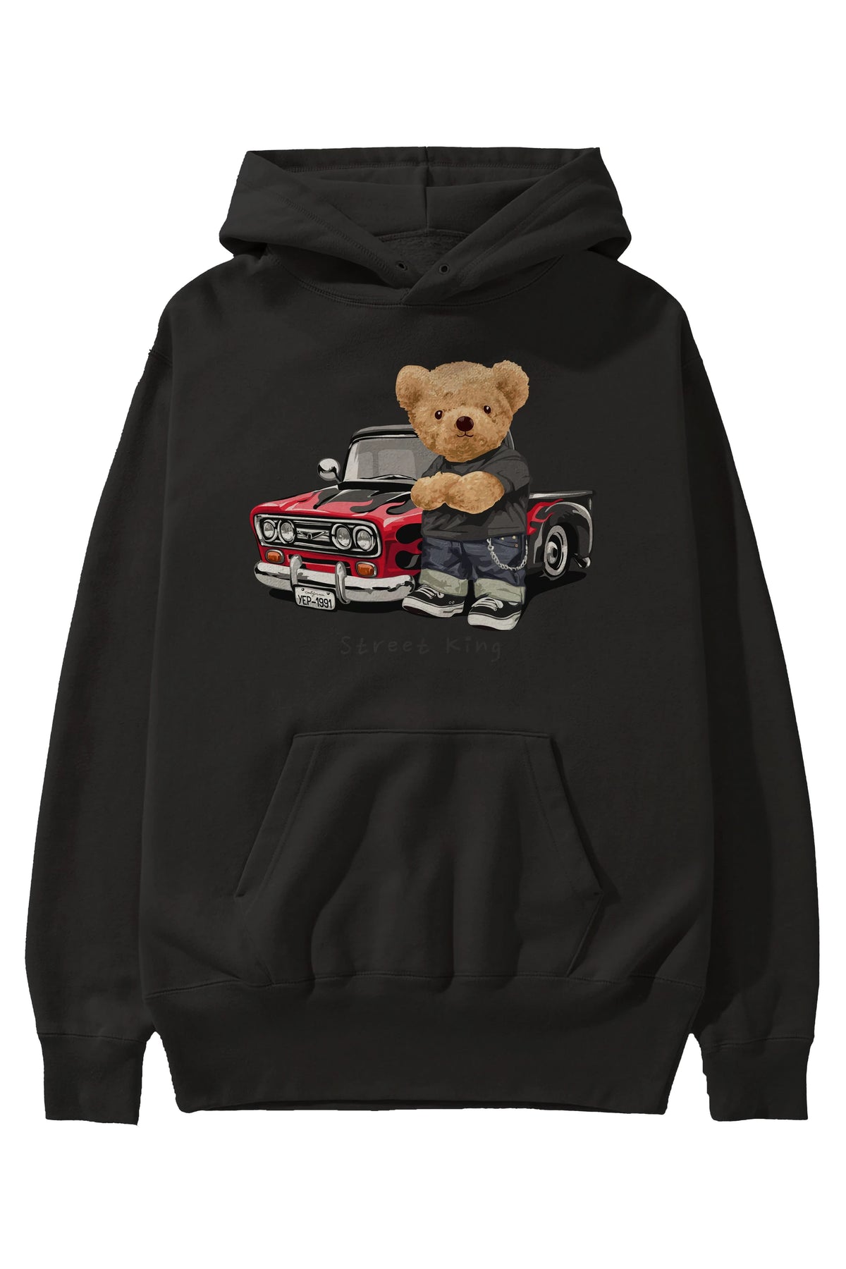 Teddy Bear Street King Ön Baskılı Hoodie Oversize Kapüşonlu Sweatshirt Erkek Kadın Unisex