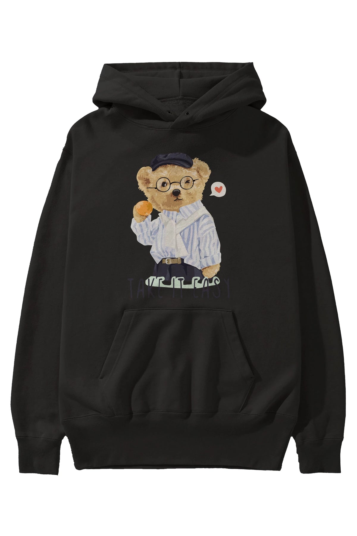 Teddy Bear Take it Easy Ön Baskılı Hoodie Oversize Kapüşonlu Sweatshirt Erkek Kadın Unisex