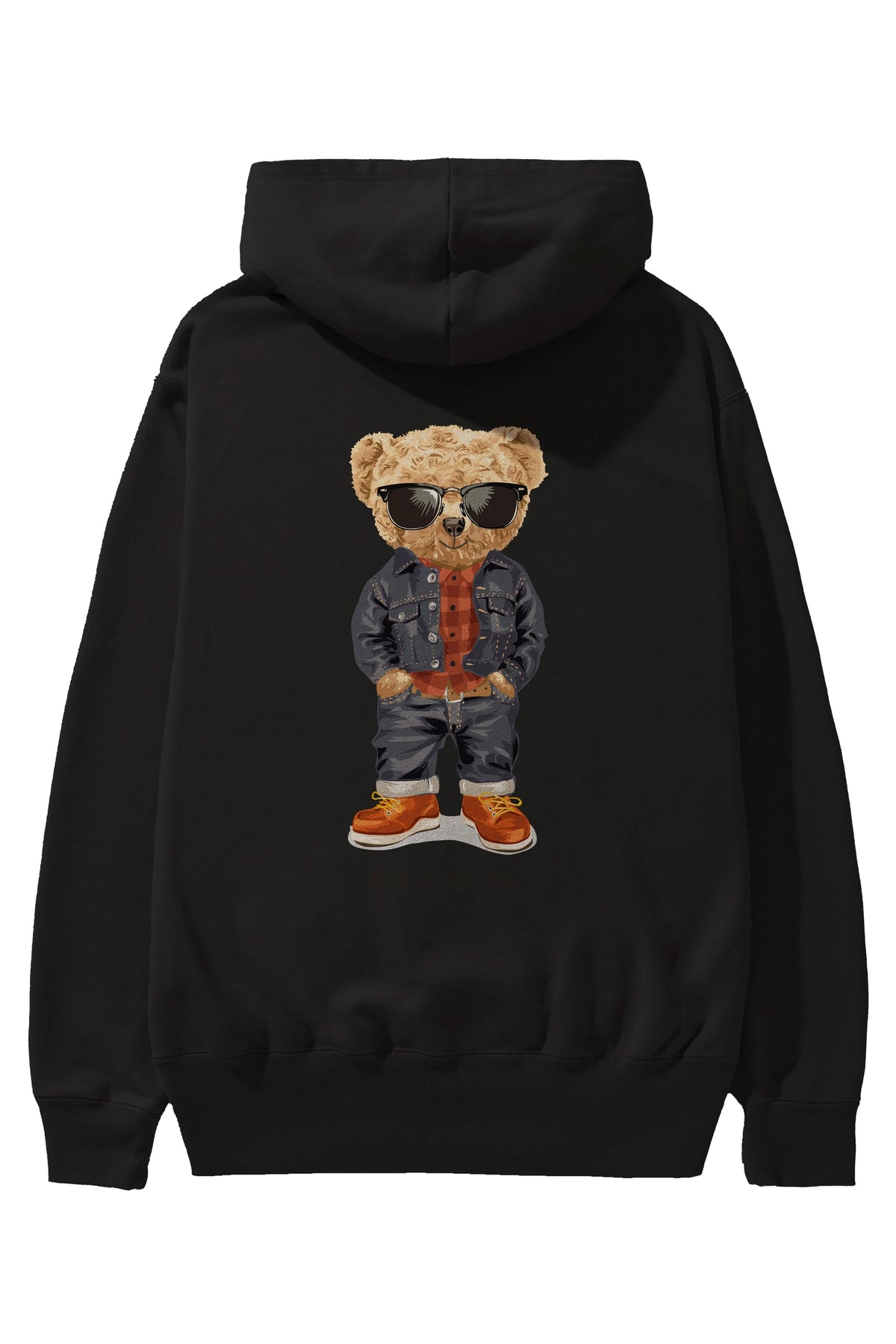 Teddy Bear Tarz Arka Baskılı Hoodie Oversize Kapüşonlu Sweatshirt Erkek Kadın Unisex