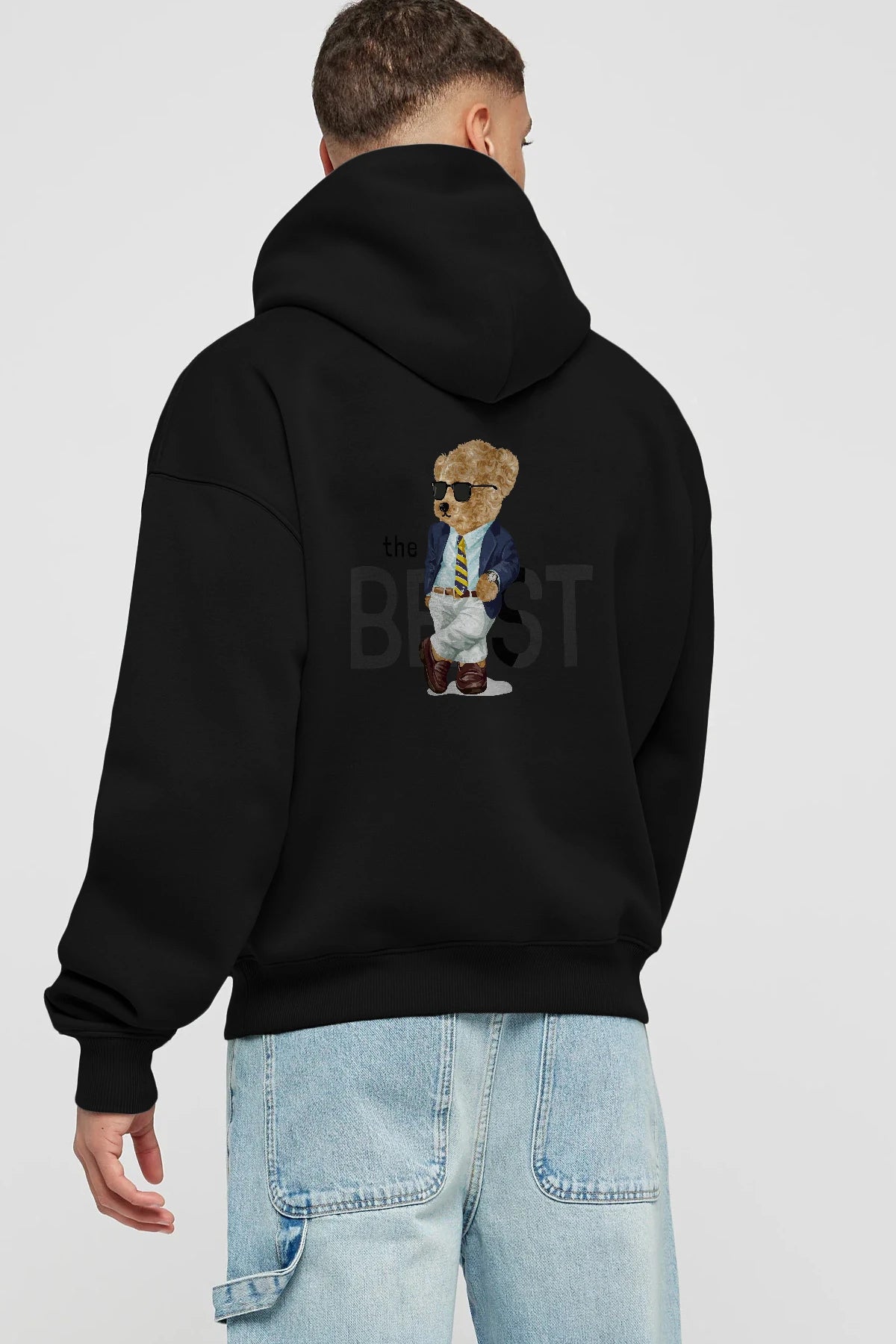 Teddy Bear The Best Arka Baskılı Hoodie Oversize Kapüşonlu Sweatshirt Erkek Kadın Unisex