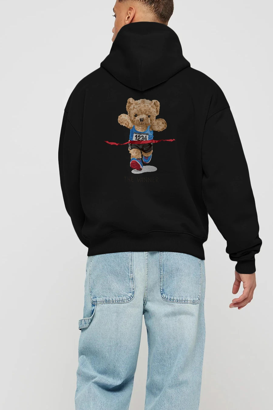 Teddy Bear The Winner Arka Baskılı Hoodie Oversize Kapüşonlu Sweatshirt Erkek Kadın Unisex