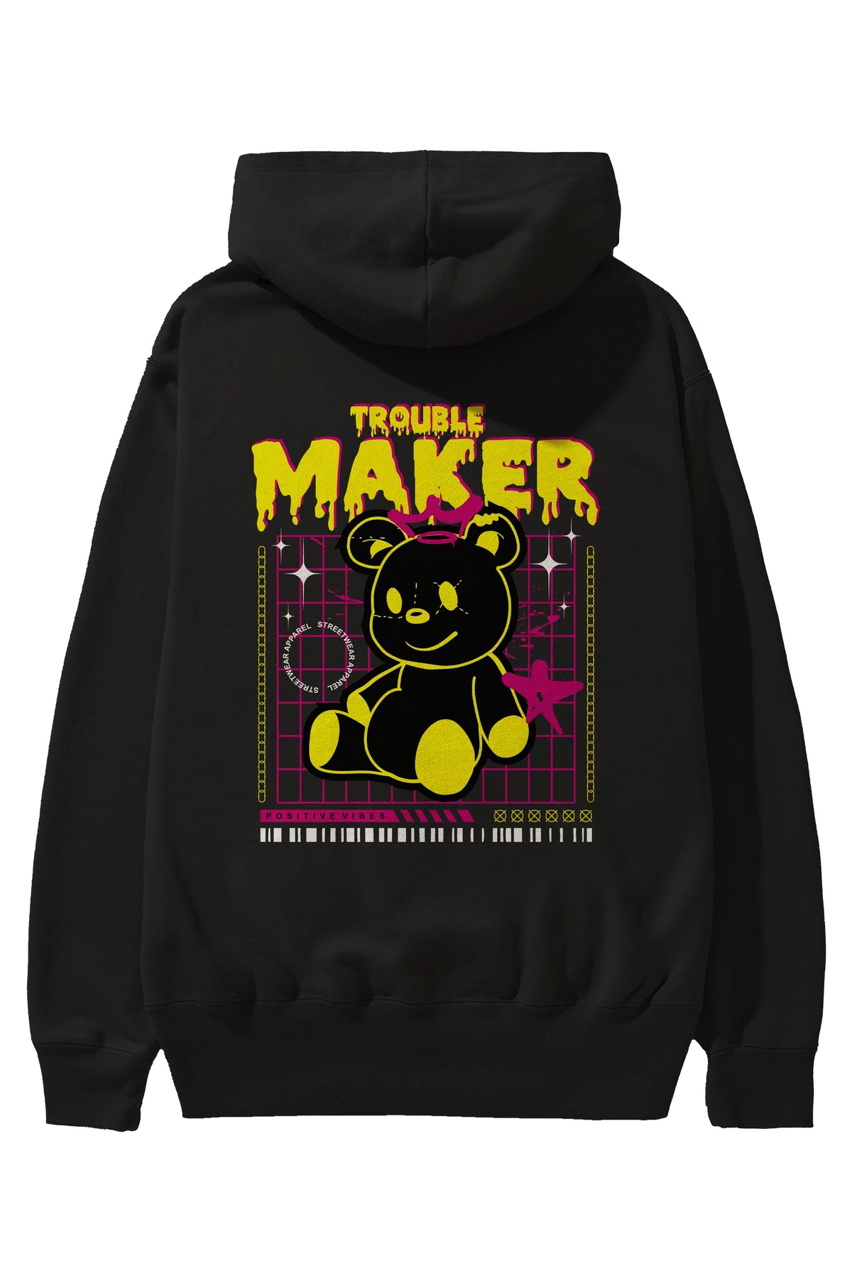 Teddy Bear Trouble Maker Arka Baskılı Hoodie Oversize Kapüşonlu Sweatshirt Erkek Kadın Unisex