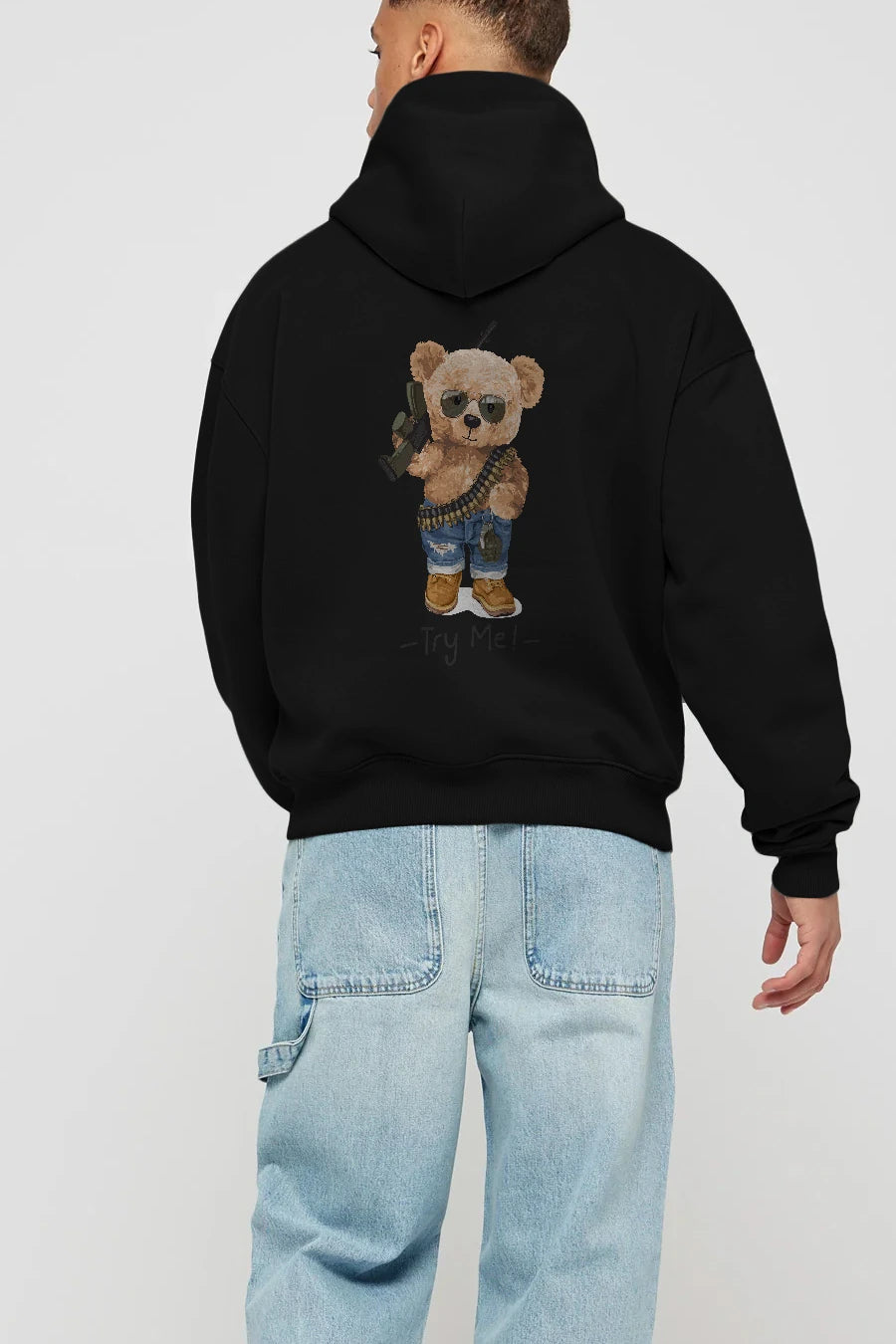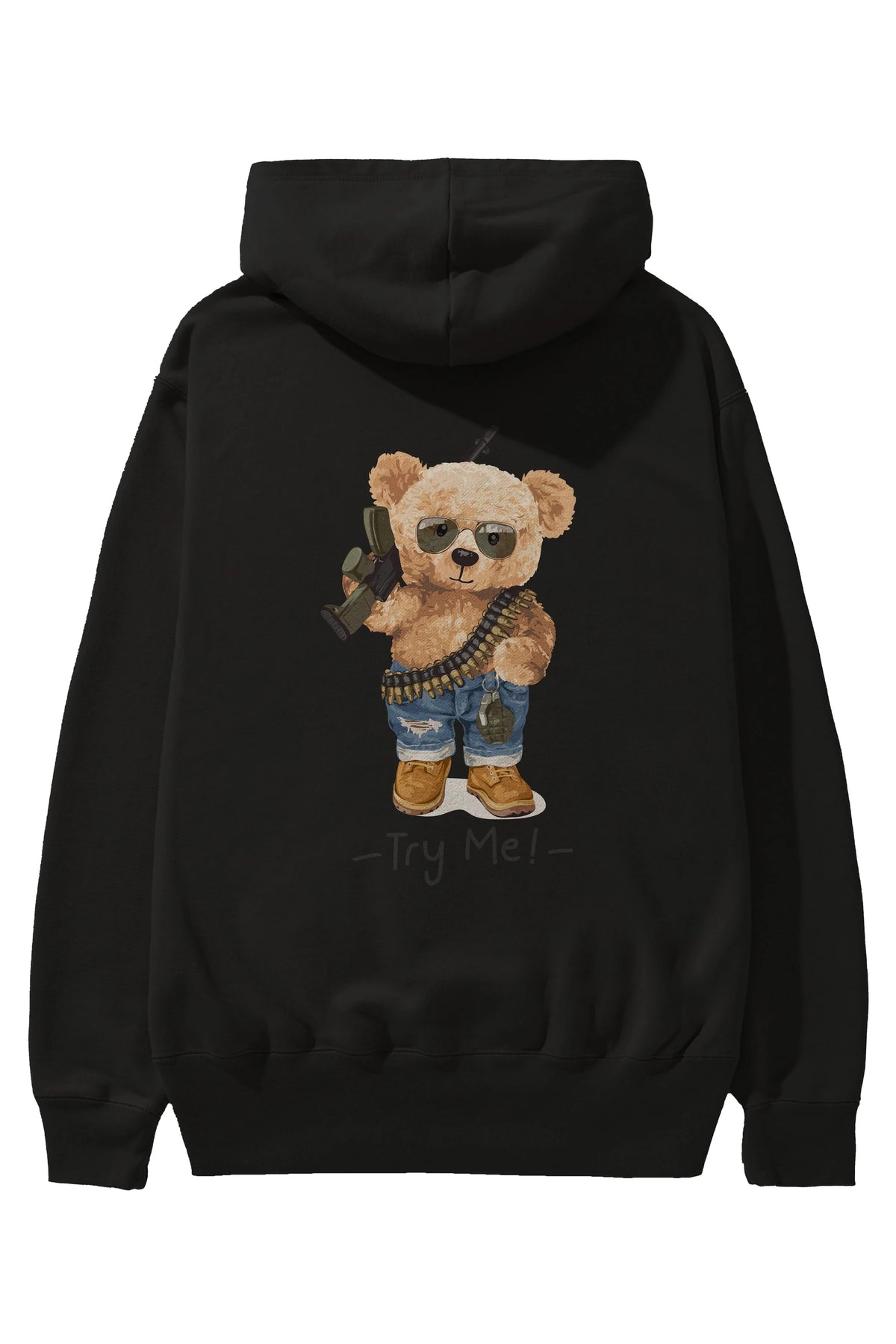 Teddy Bear Try Me Arka Baskılı Hoodie Oversize Kapüşonlu Sweatshirt Erkek Kadın Unisex