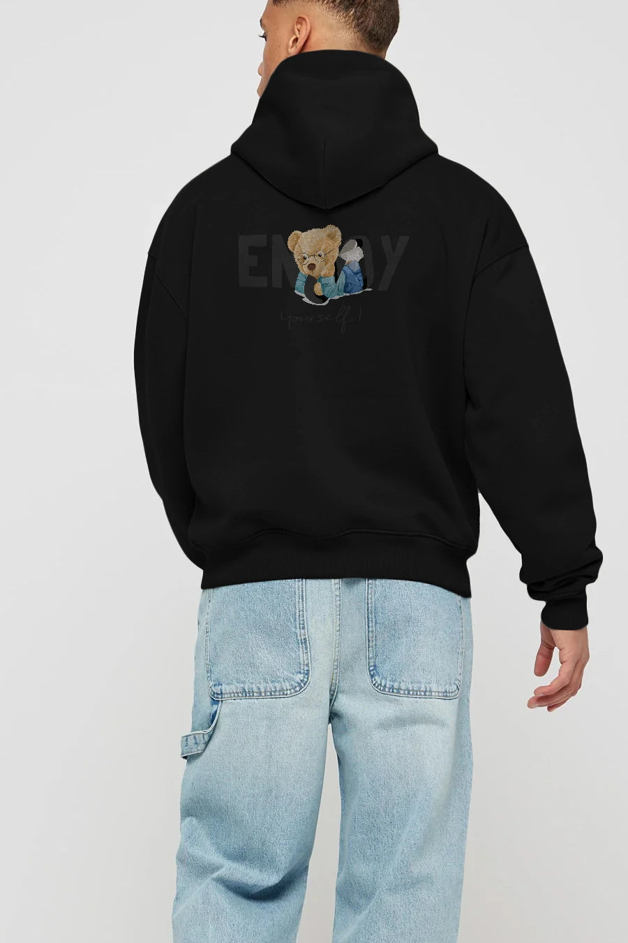 Teddy Bear Yourself Arka Baskılı Hoodie Oversize Kapüşonlu Sweatshirt Erkek Kadın Unisex