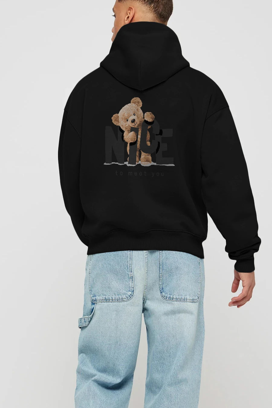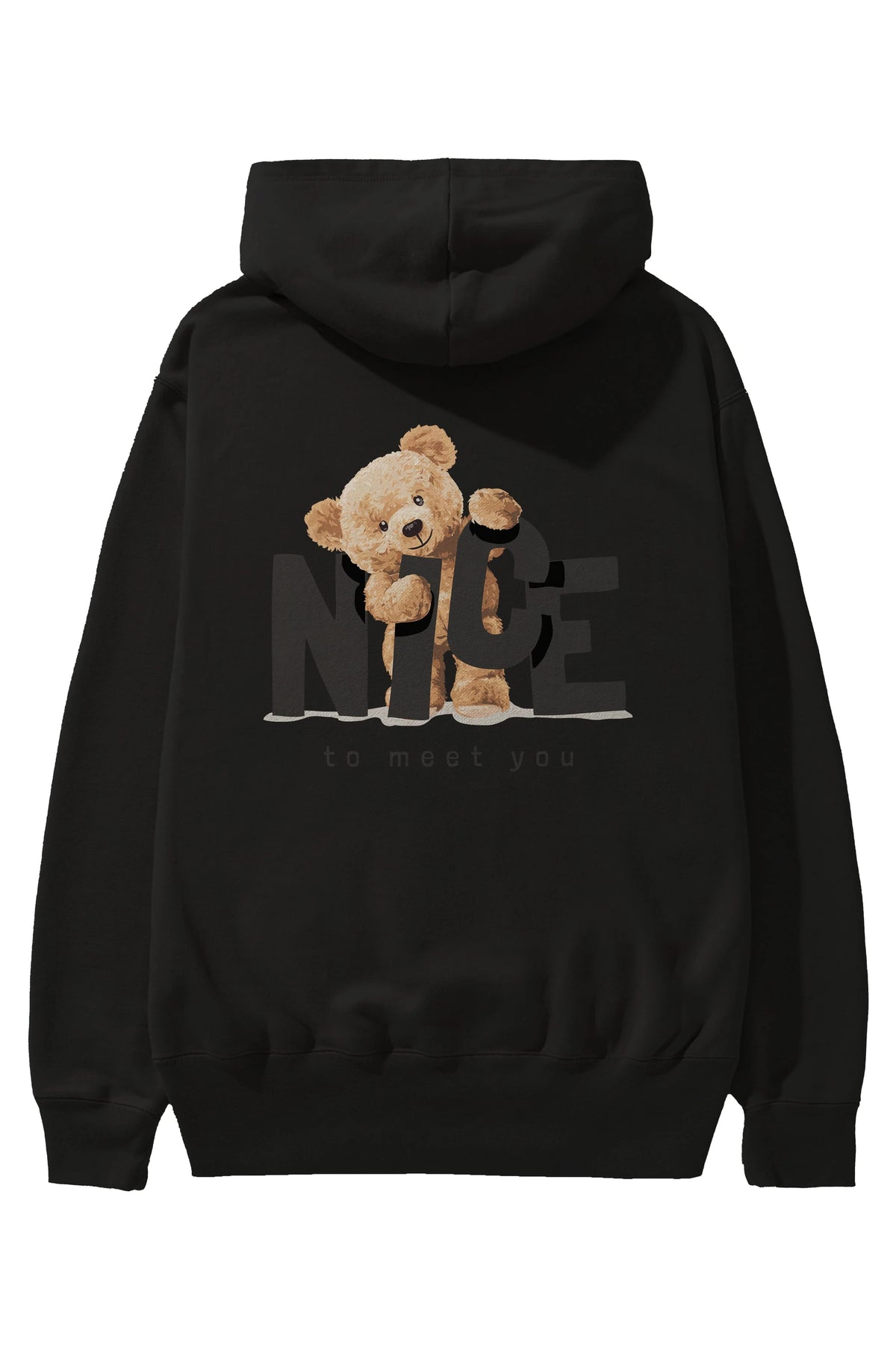 Teddy Nıce To Meet You Arka Baskılı Hoodie Oversize Kapüşonlu Sweatshirt Erkek Kadın Unisex
