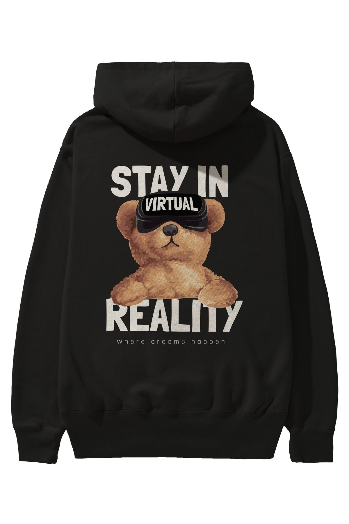 Teddy Stay In Reality Arka Baskılı Hoodie Oversize Kapüşonlu Sweatshirt Erkek Kadın Unisex