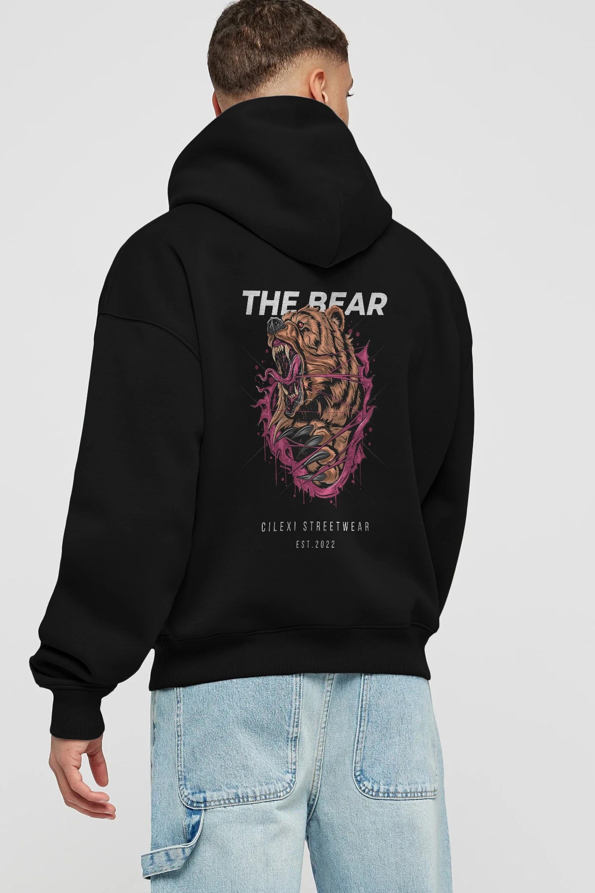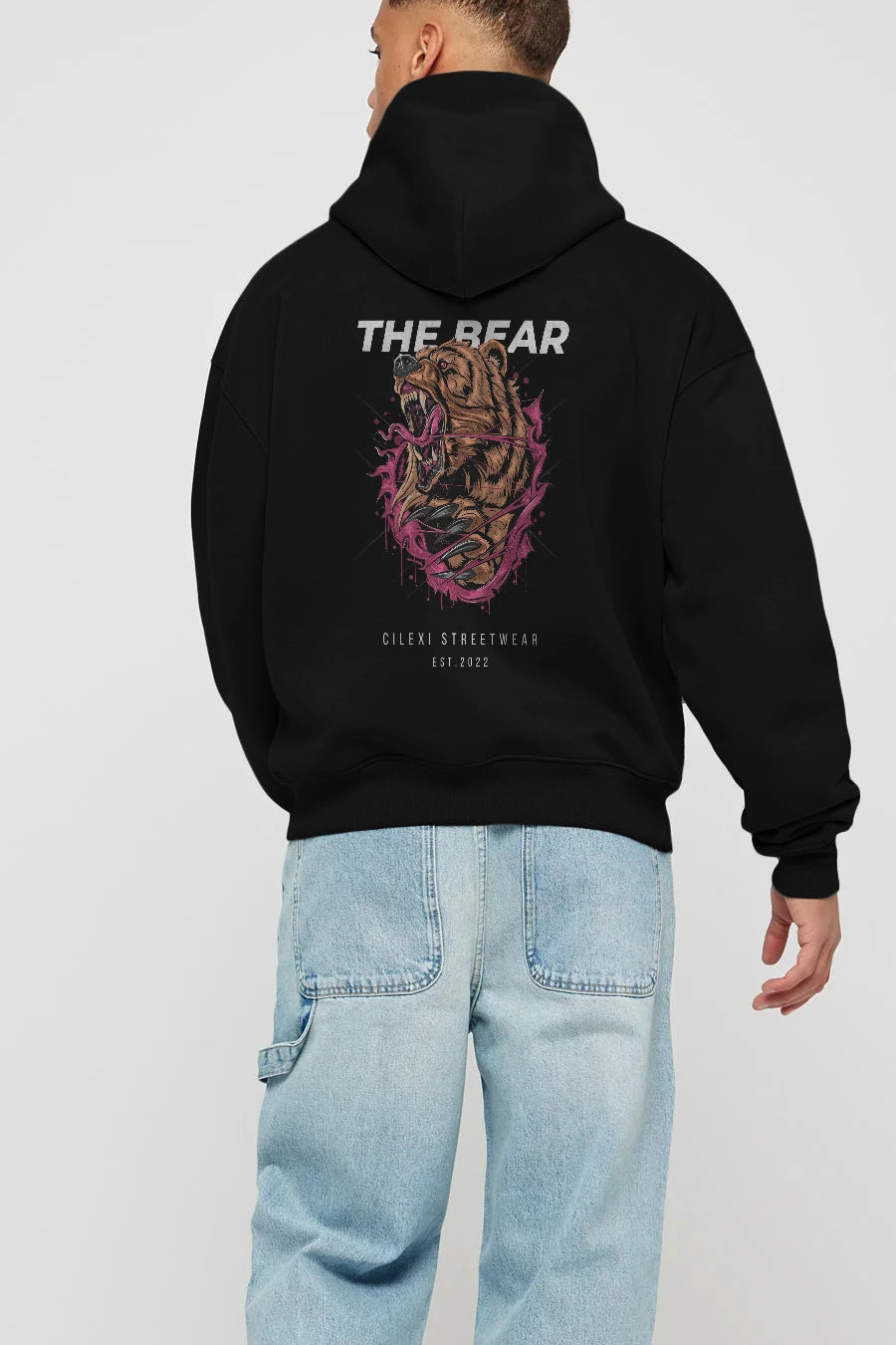 The Bear Arka Baskılı Hoodie Oversize Kapüşonlu Sweatshirt Erkek Kadın Unisex