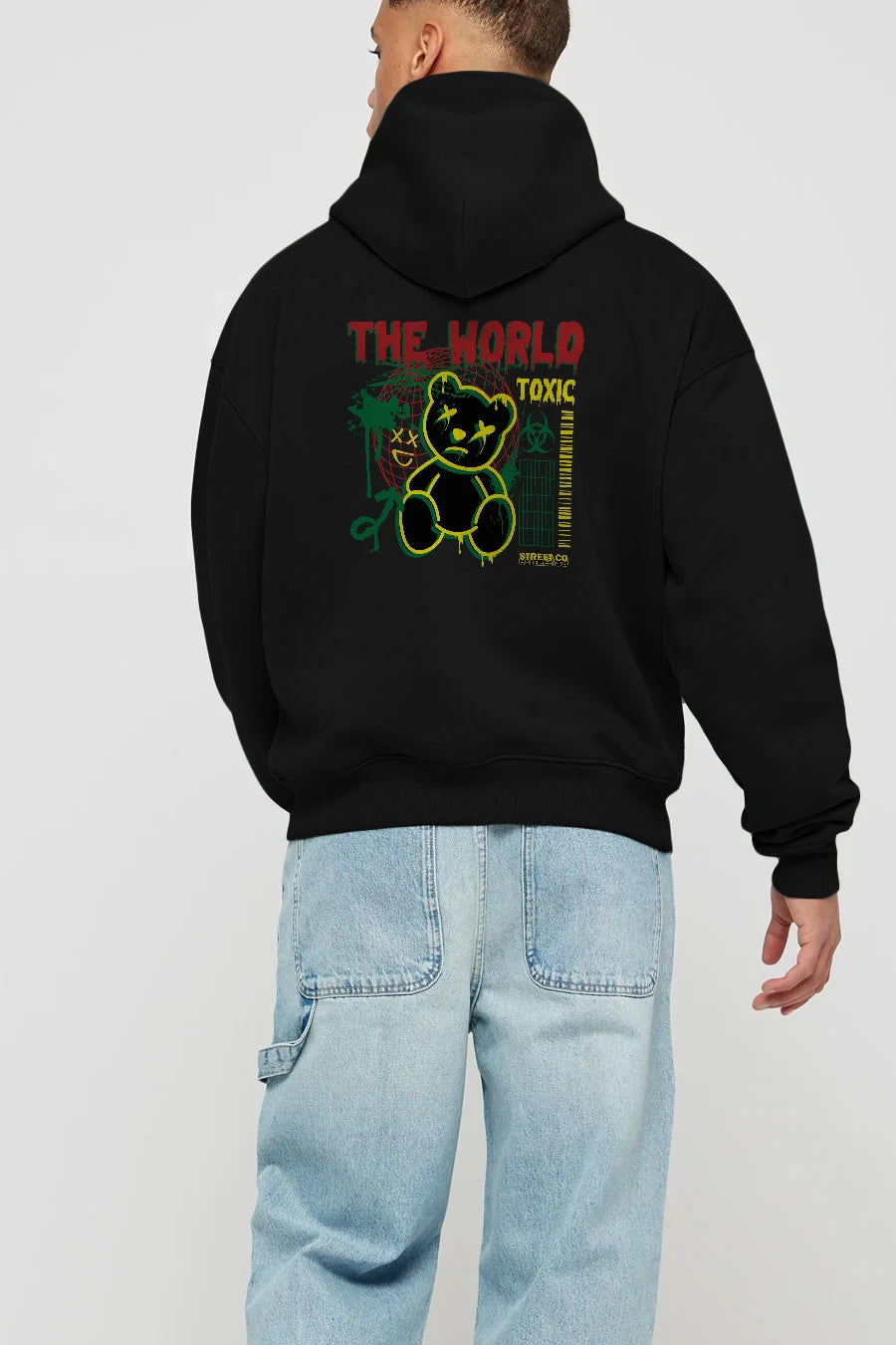 The World Toxic Bear Arka Baskılı Hoodie Oversize Kapüşonlu Sweatshirt Erkek Kadın Unisex