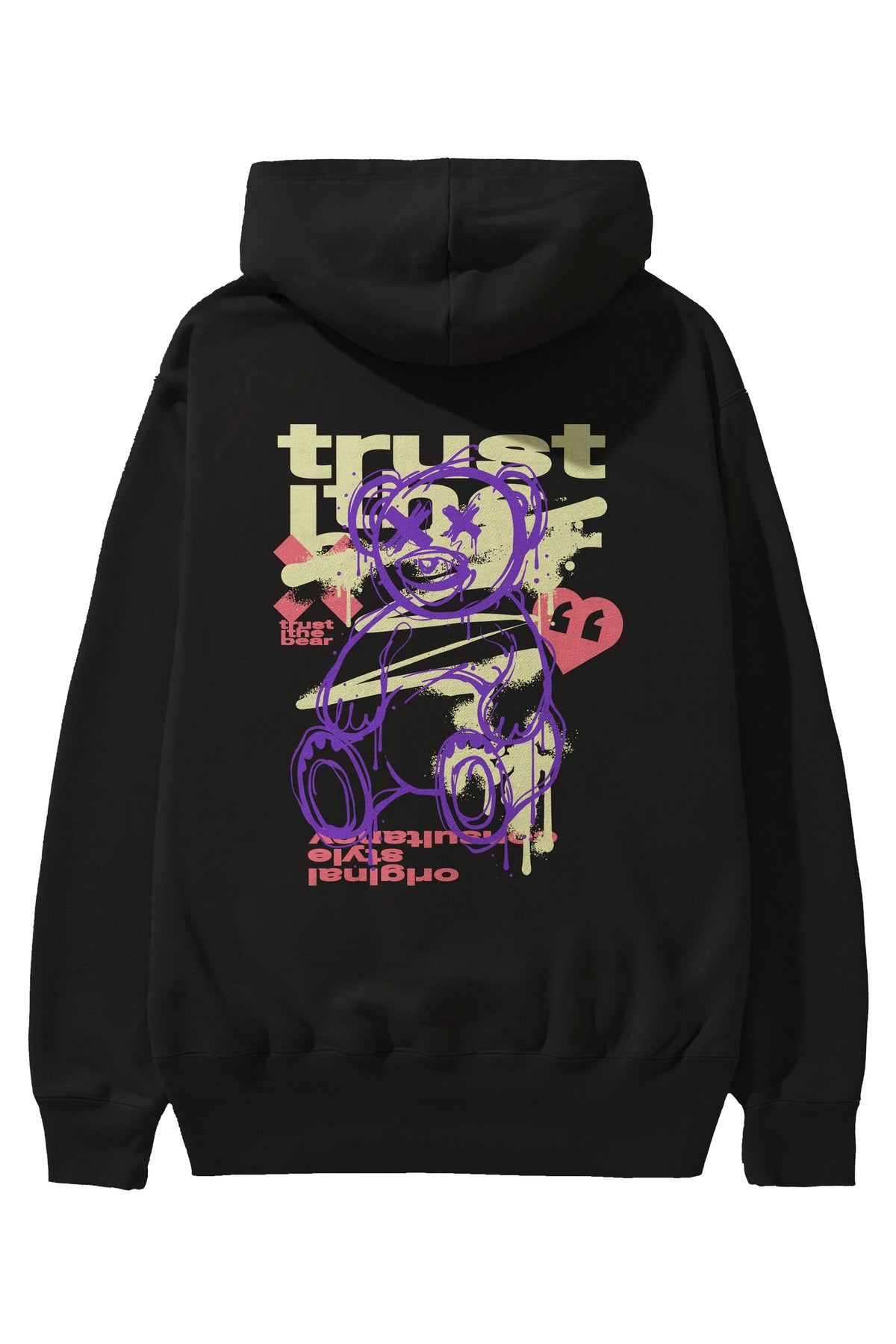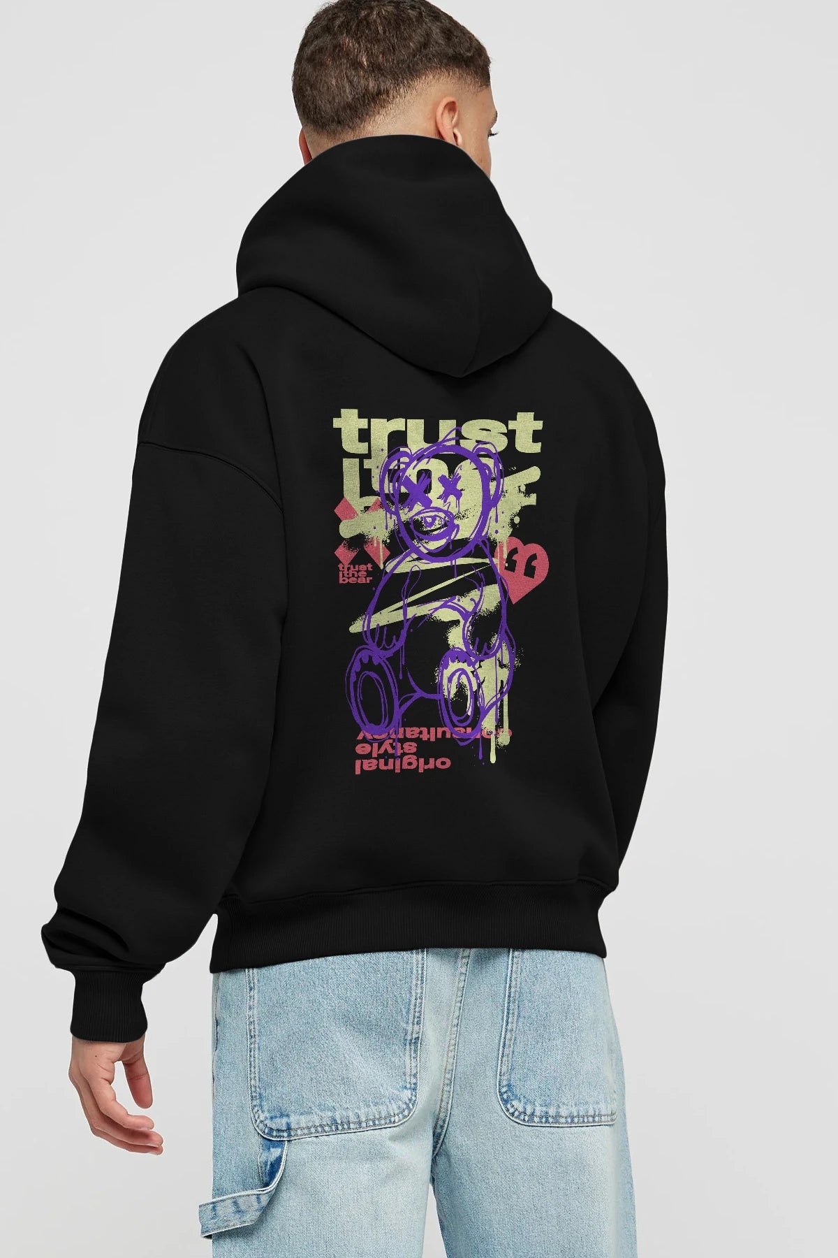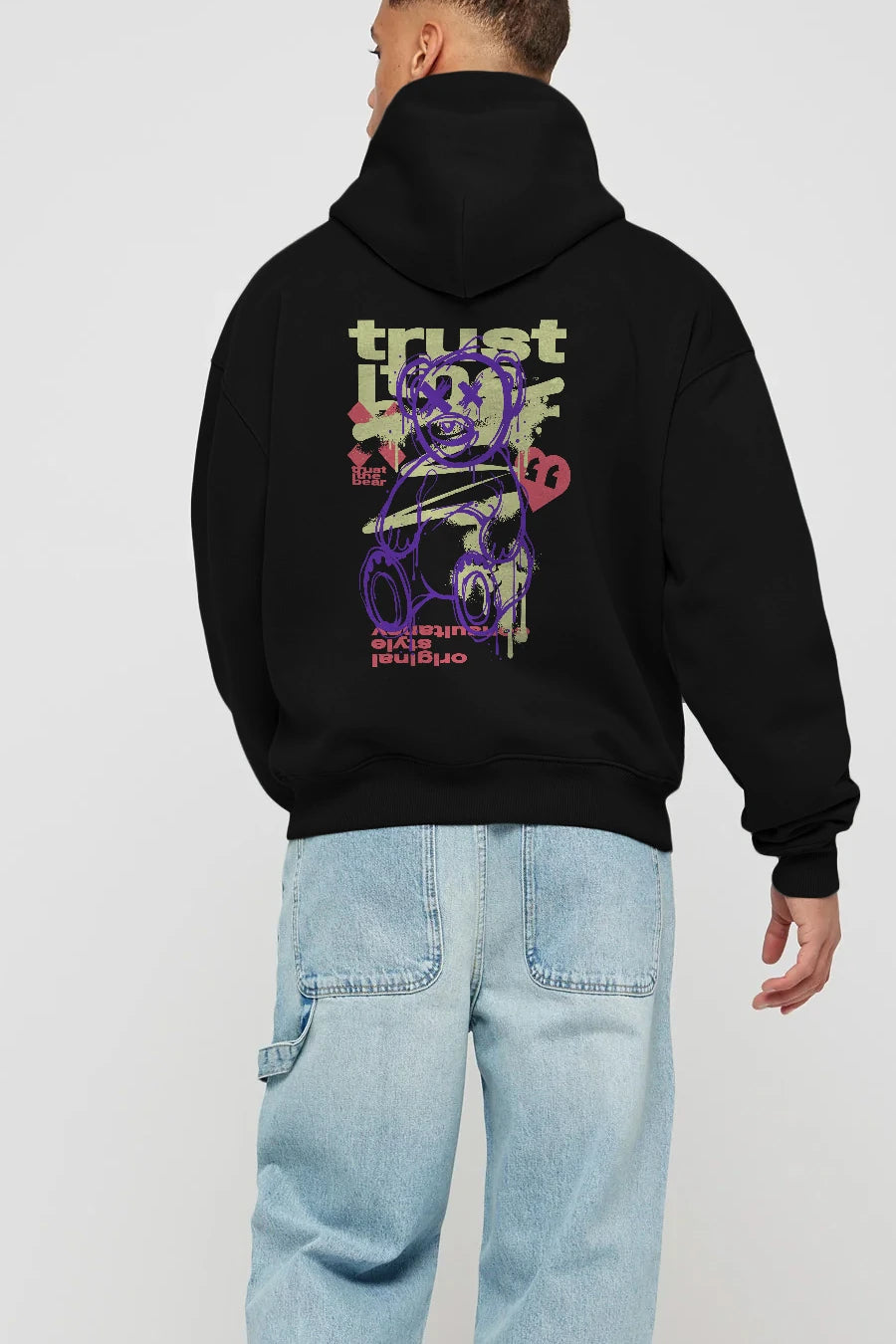 Trust The Bear 3 Arka Baskılı Hoodie Oversize Kapüşonlu Sweatshirt Erkek Kadın Unisex