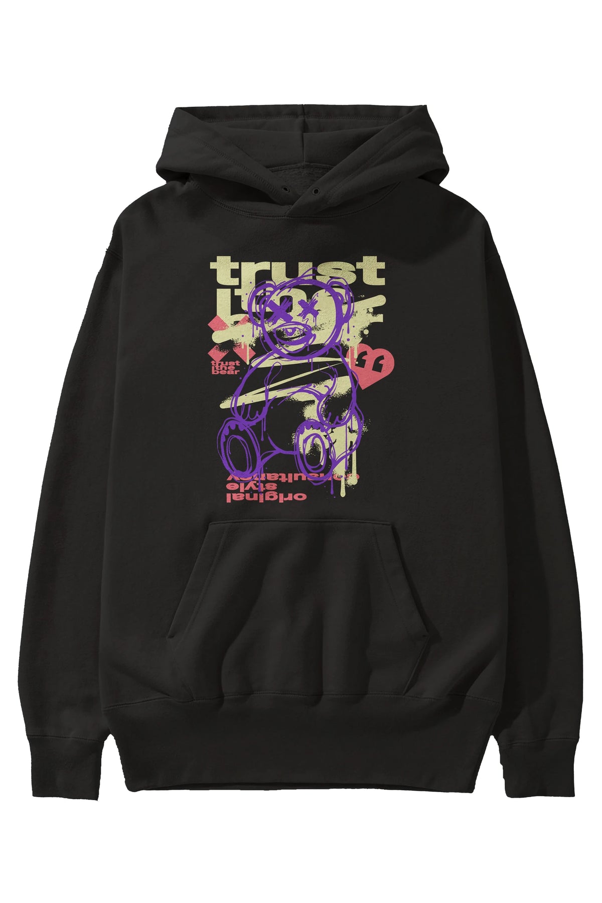 Trust The Bear 3 Ön Baskılı Hoodie Oversize Kapüşonlu Sweatshirt Erkek Kadın Unisex