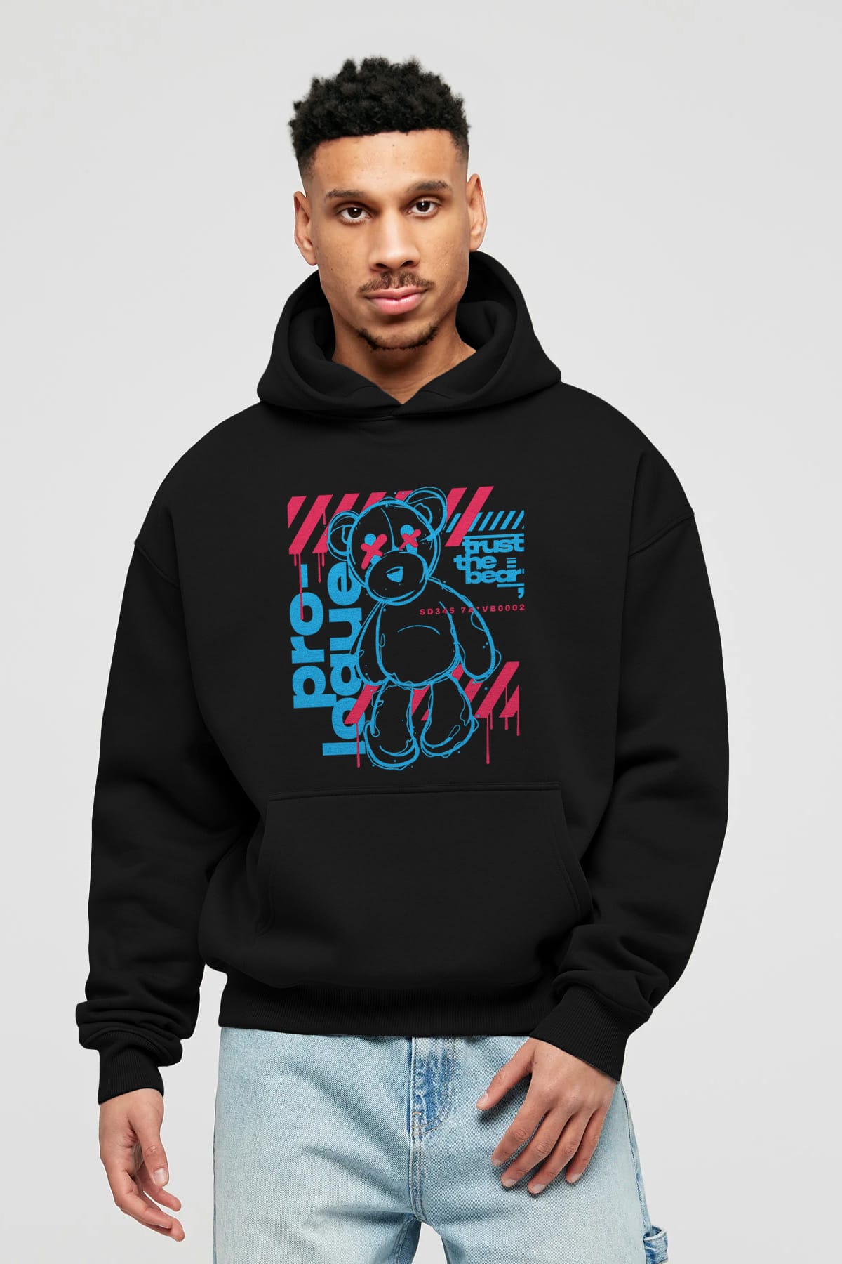 Trust The Bear Ön Baskılı Hoodie Oversize Kapüşonlu Sweatshirt Erkek Kadın Unisex
