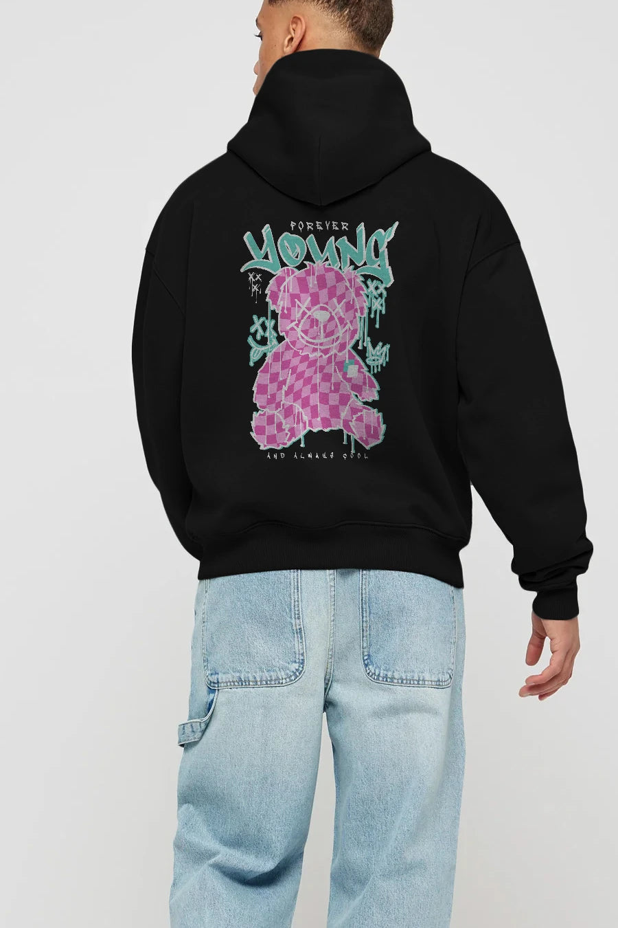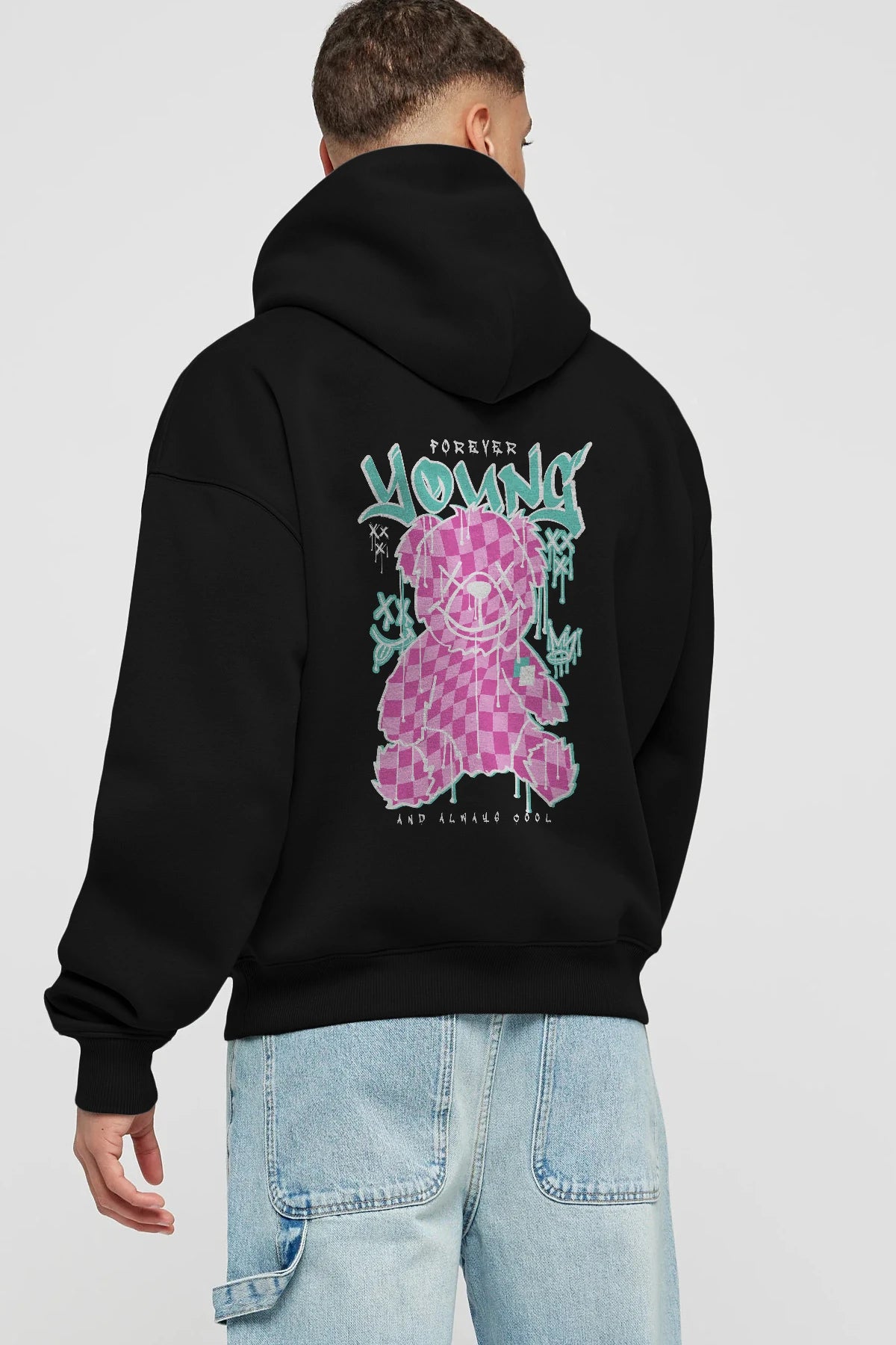 Young and Always Cool Bear Arka Baskılı Hoodie Oversize Kapüşonlu Sweatshirt Erkek Kadın Unisex