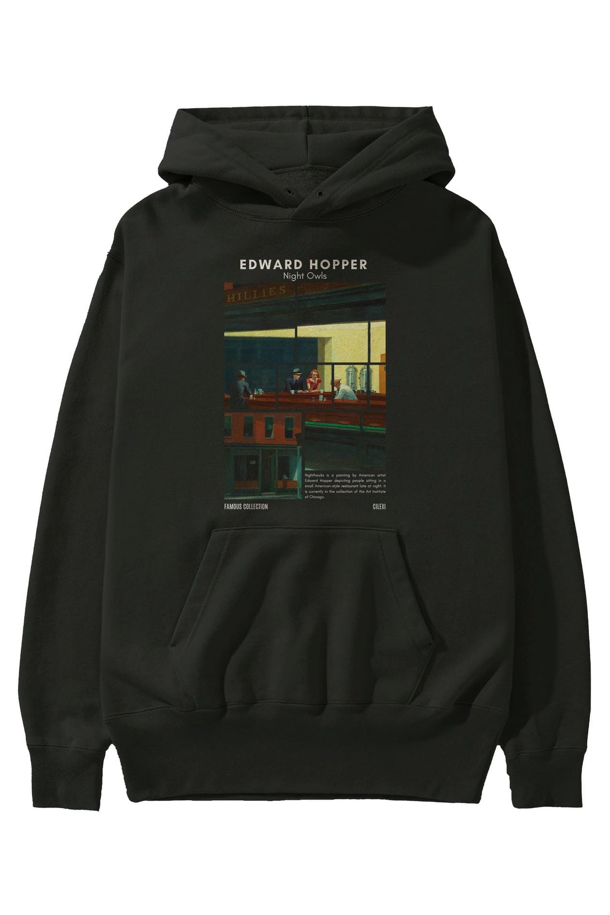 Edward Hopper Night Owls ön Baskılı Hoodie Oversize Kapüşonlu Sweatshirt Erkek Kadın