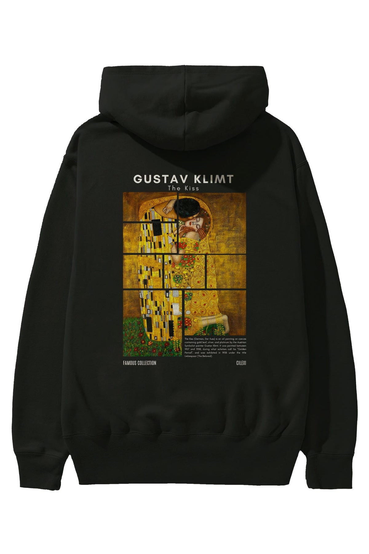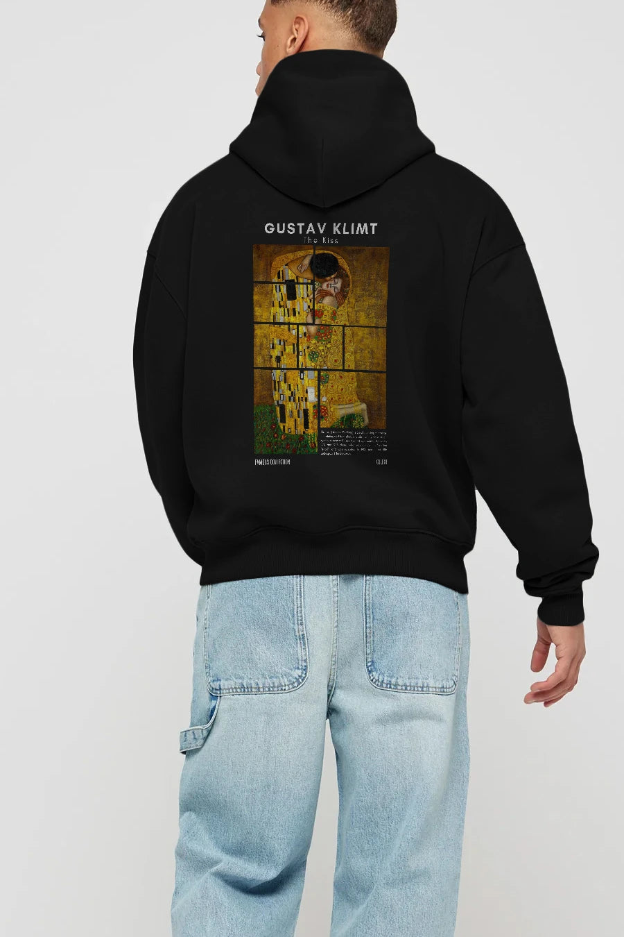 Gustav Klimt The Kiss Arka Baskılı Hoodie Oversize Kapüşonlu Sweatshirt Erkek Kadın