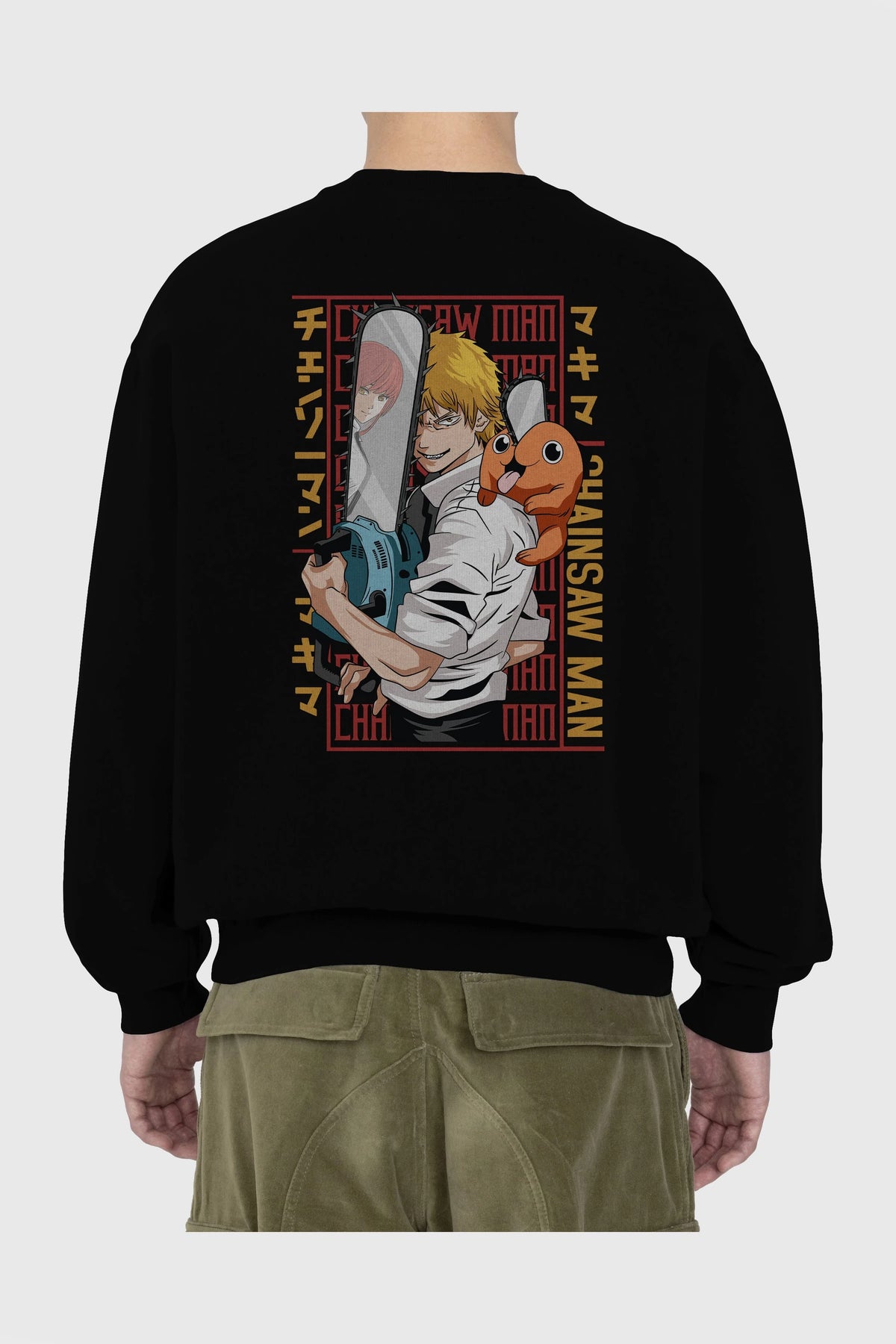 Chainsaw DENJI Anime Arka Baskılı Oversize Sweatshirt Erkek Kadın Unisex