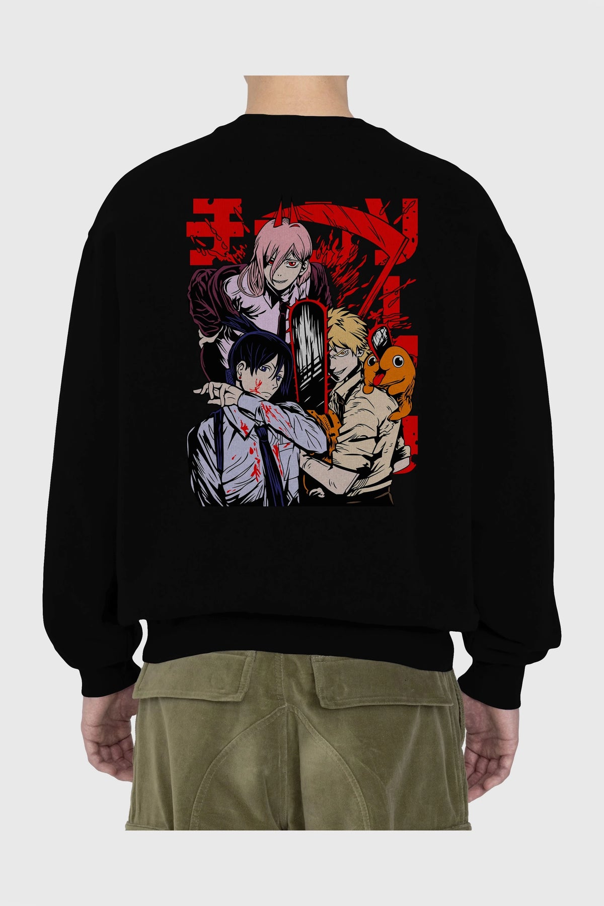 CHAINSAWMAN CREW Anime Arka Baskılı Oversize Sweatshirt Erkek Kadın Unisex