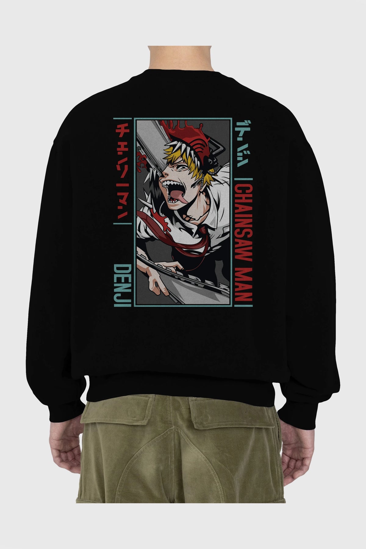 Denji Chainsaw Man Anime Arka Baskılı Oversize Sweatshirt Erkek Kadın Unisex