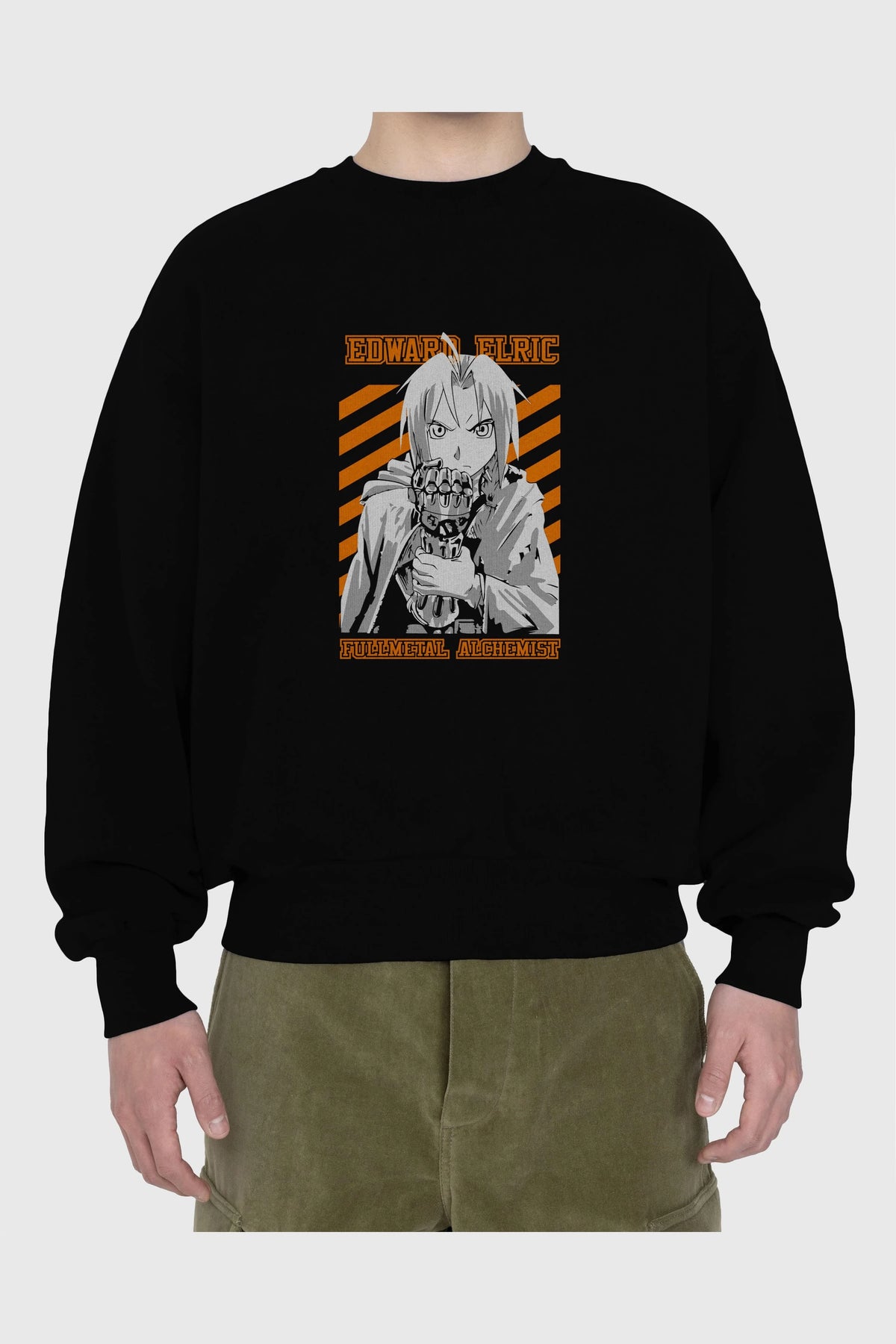 EDWARD ELRIC Anime Ön Baskılı Oversize Sweatshirt Erkek Kadın Unisex