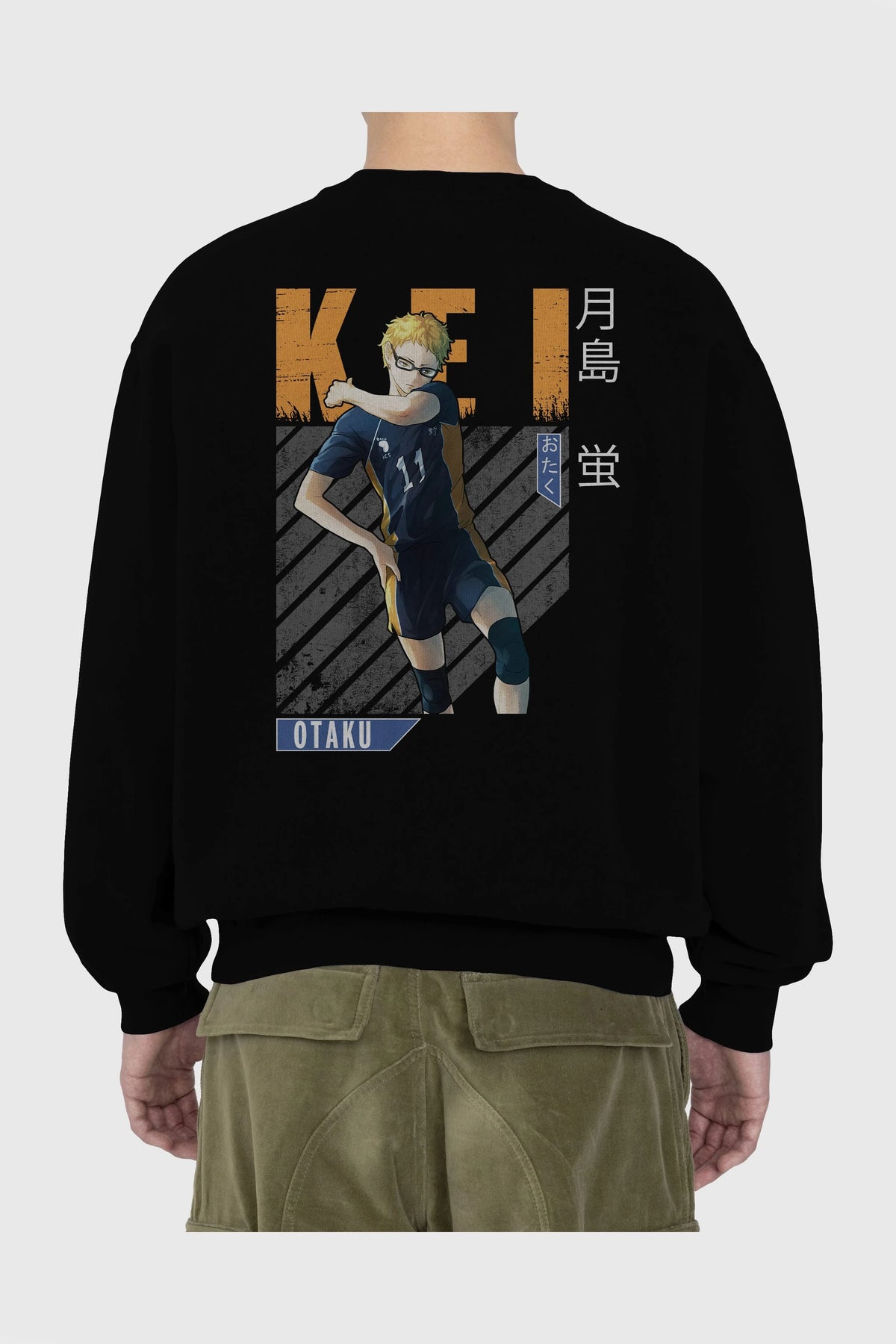 Kei Tsukishima 2 Anime Arka Baskılı Oversize Sweatshirt Erkek Kadın Unisex