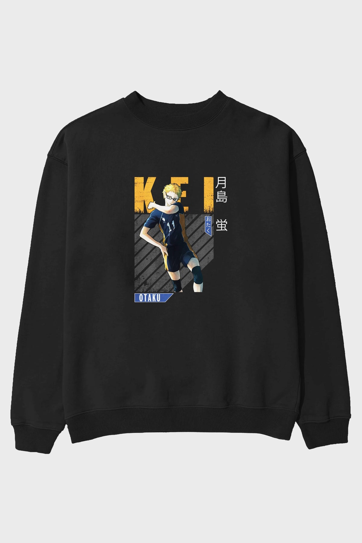 Kei Tsukishima 2 Anime Ön Baskılı Oversize Sweatshirt Erkek Kadın Unisex