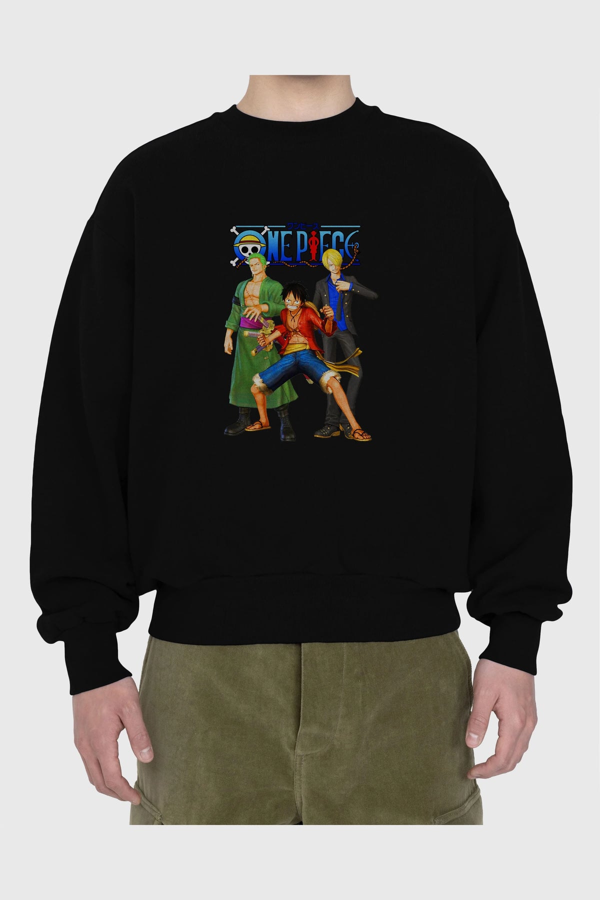 Luffy Sanji Zoro Ön Baskılı Anime Oversize Sweatshirt Erkek Kadın Unisex
