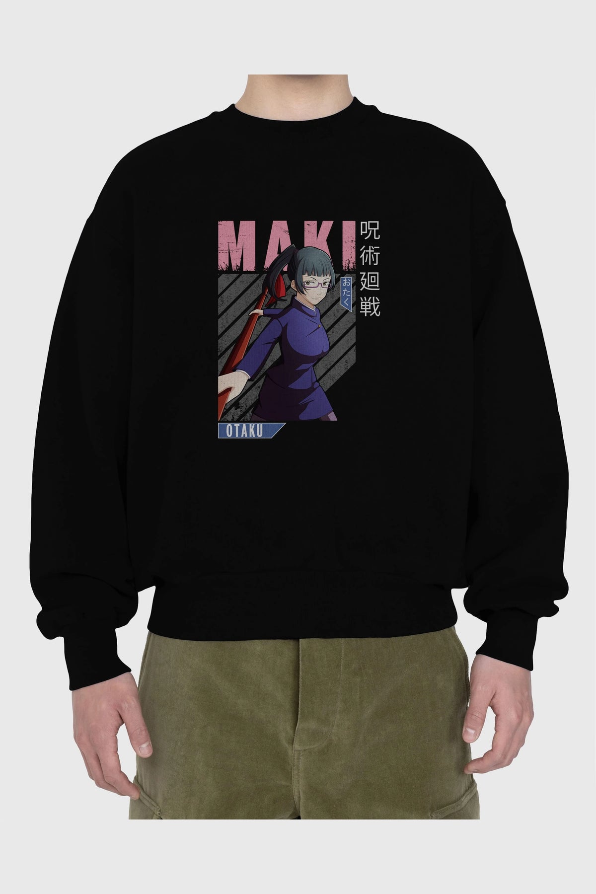 Maki Zenin CHAINSAWMAN Anime Ön Baskılı Oversize Sweatshirt Erkek Kadın Unisex