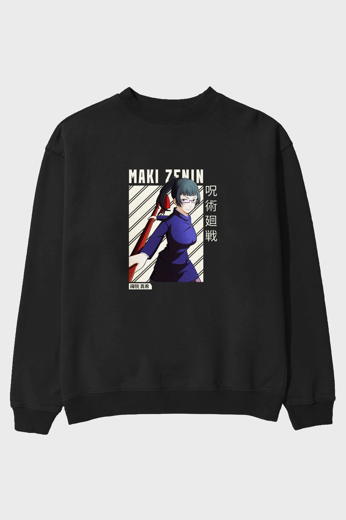 Maki Zenin CHAİNSAWMAN Anime Ön Baskılı Oversize Sweatshirt Erkek Kadın Unisex