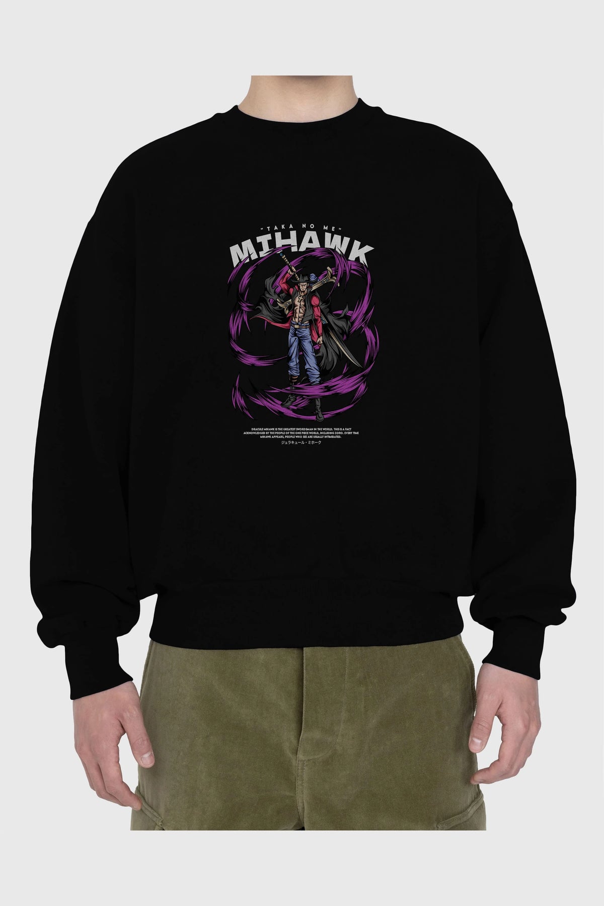 Mihawk Anime Ön Baskılı Oversize Sweatshirt Erkek Kadın Unisex