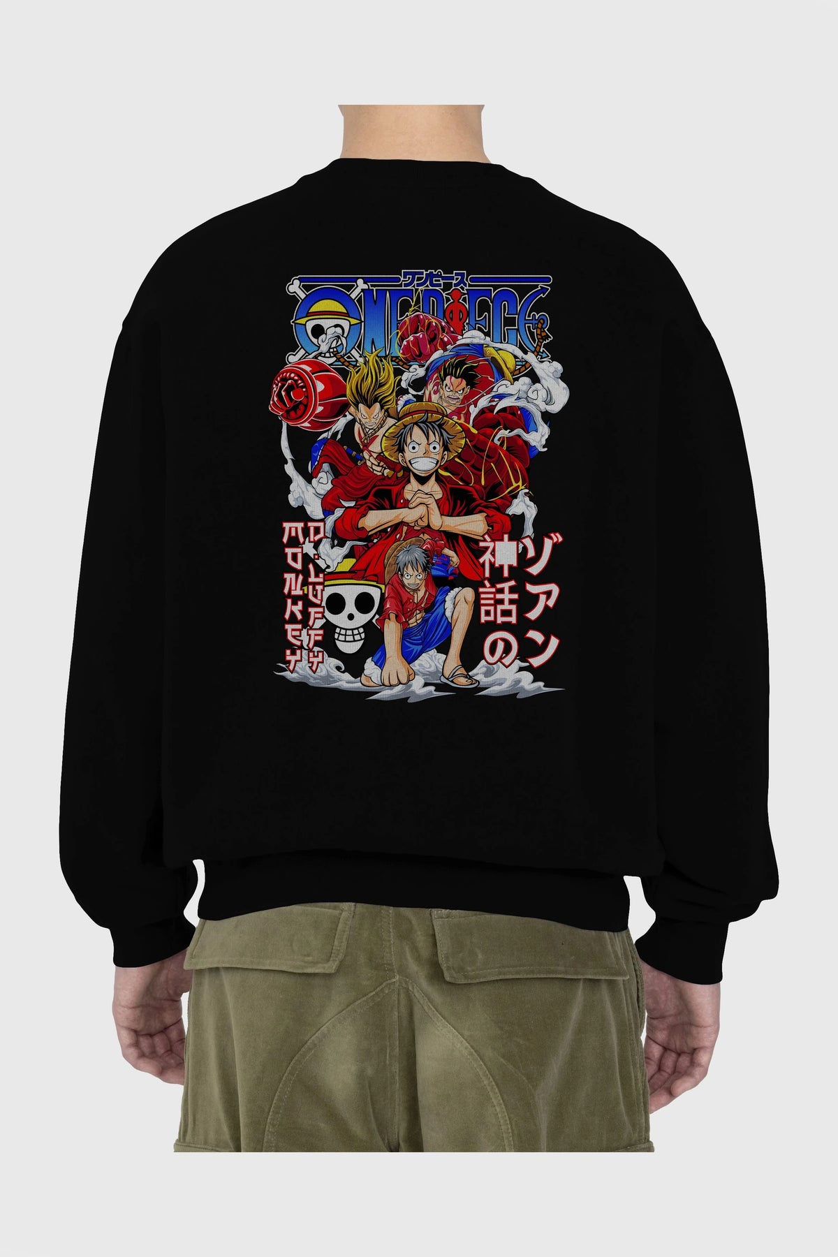 MONKEY D. LUFF-ONE PIECE 2 Anime Arka Baskılı Oversize Sweatshirt Erkek Kadın Unisex