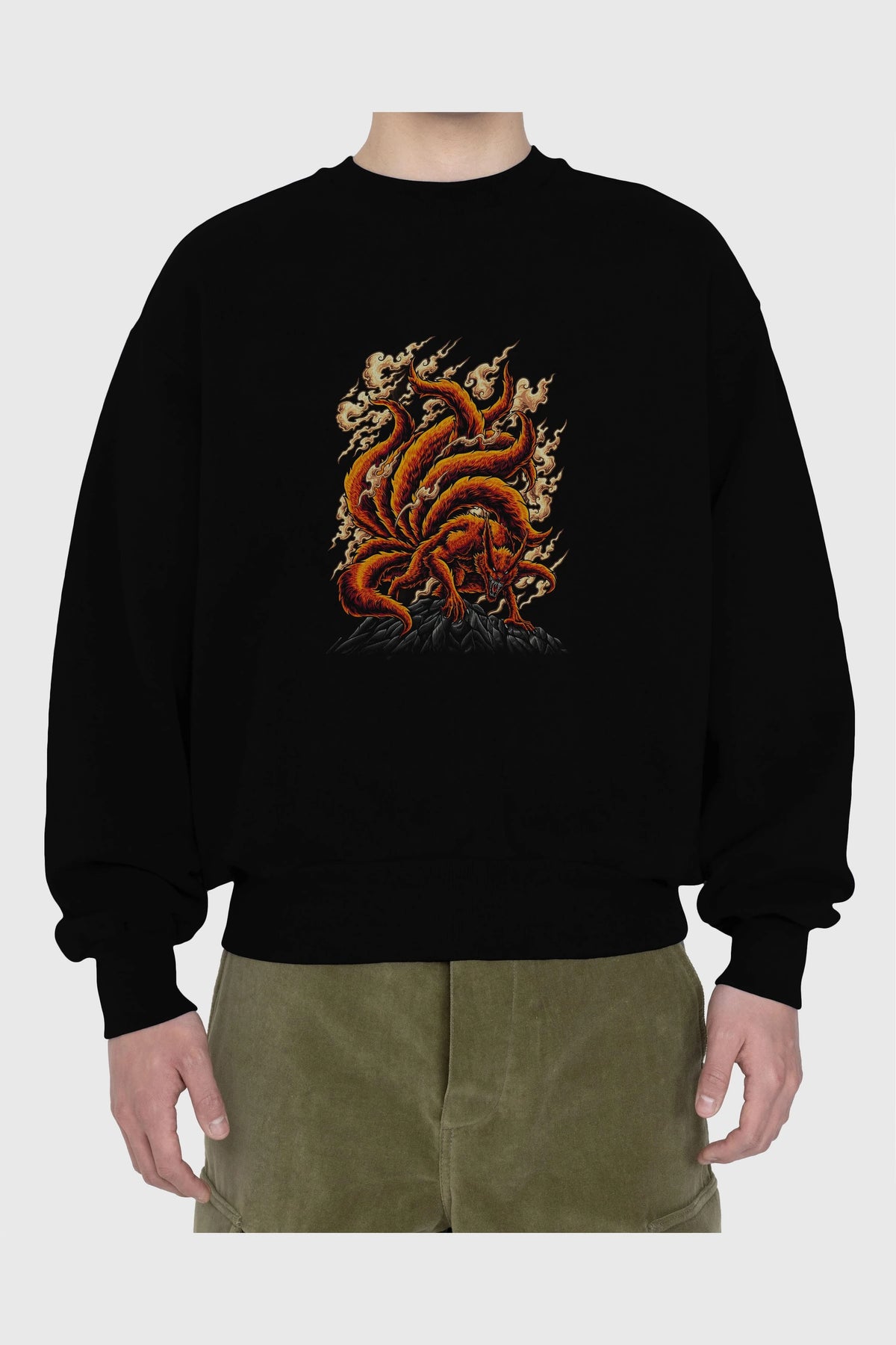 NARUTO KYUUBI Anime Ön Baskılı Oversize Sweatshirt Erkek Kadın Unisex