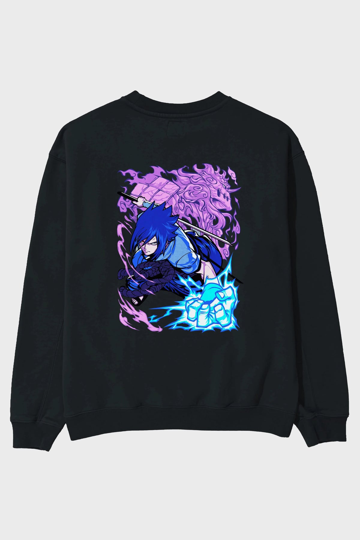 NARUTO SASUKE UCHIHA 2 Anime Arka Baskılı Oversize Sweatshirt Erkek Kadın Unisex