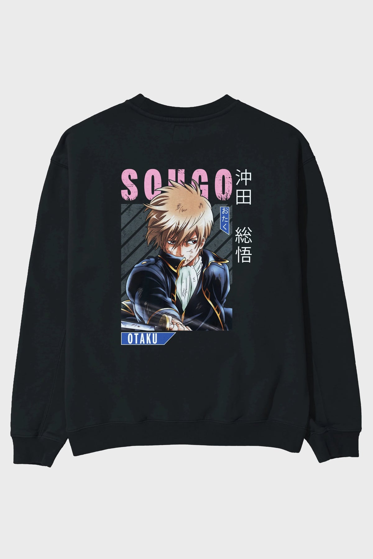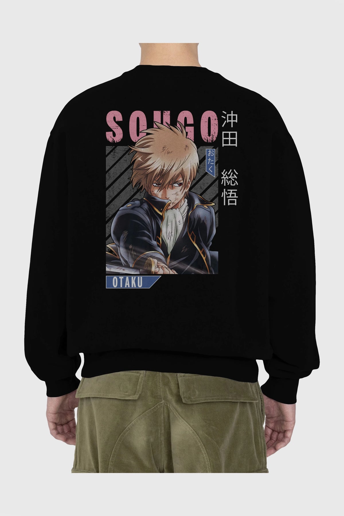 Sougo Okita GINTAMA Anime Arka Baskılı Oversize Sweatshirt Erkek Kadın Unisex