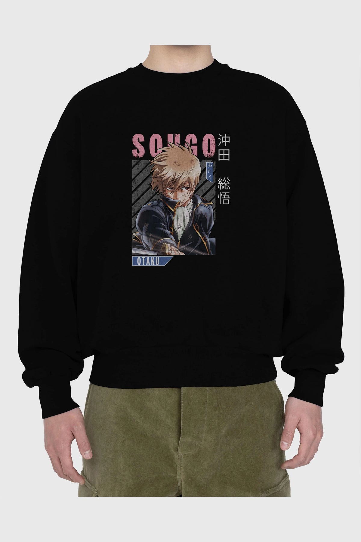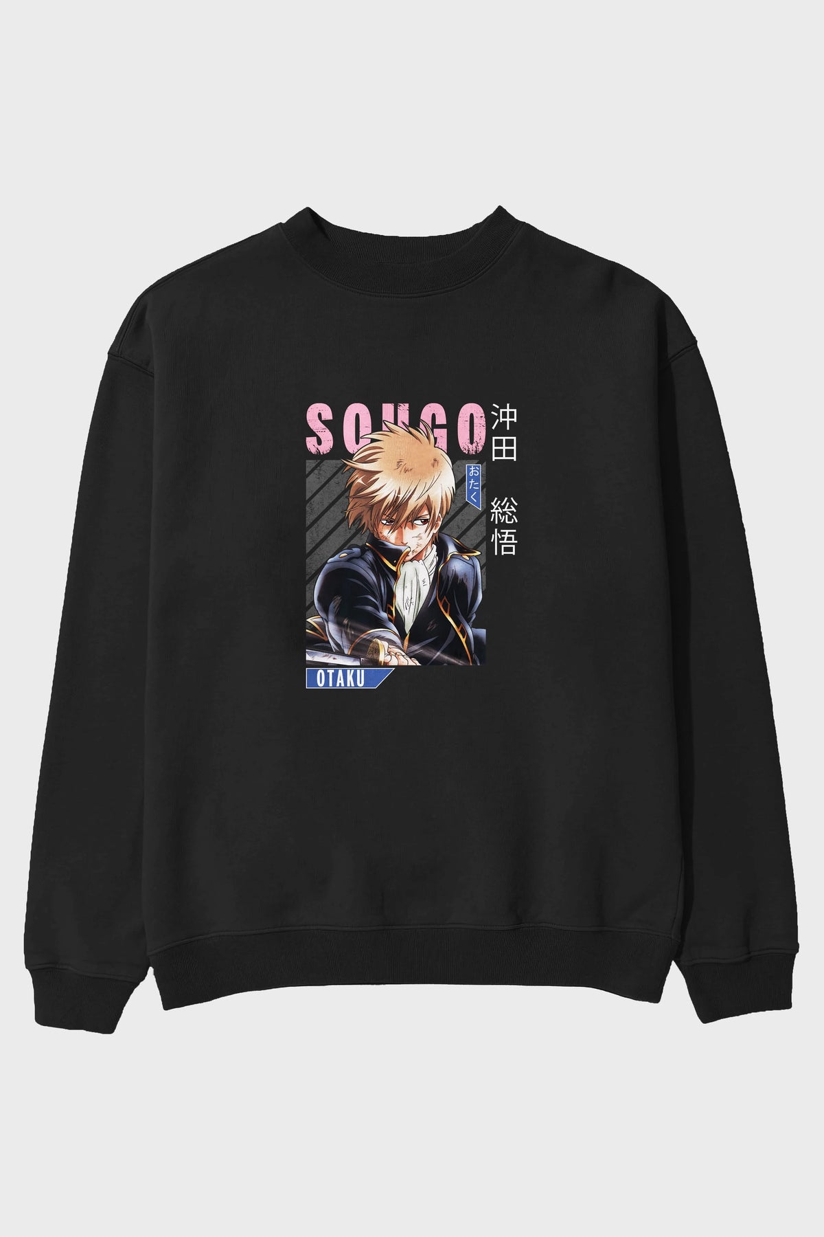 Sougo Okita GINTAMA Anime Ön Baskılı Oversize Sweatshirt Erkek Kadın Unisex