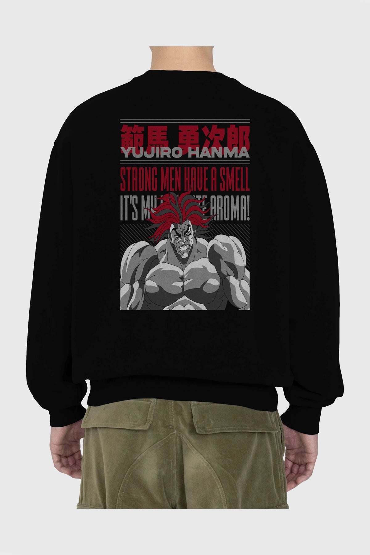 YUJIRO HANMA Anime Arka Baskılı Oversize Sweatshirt Erkek Kadın Unisex