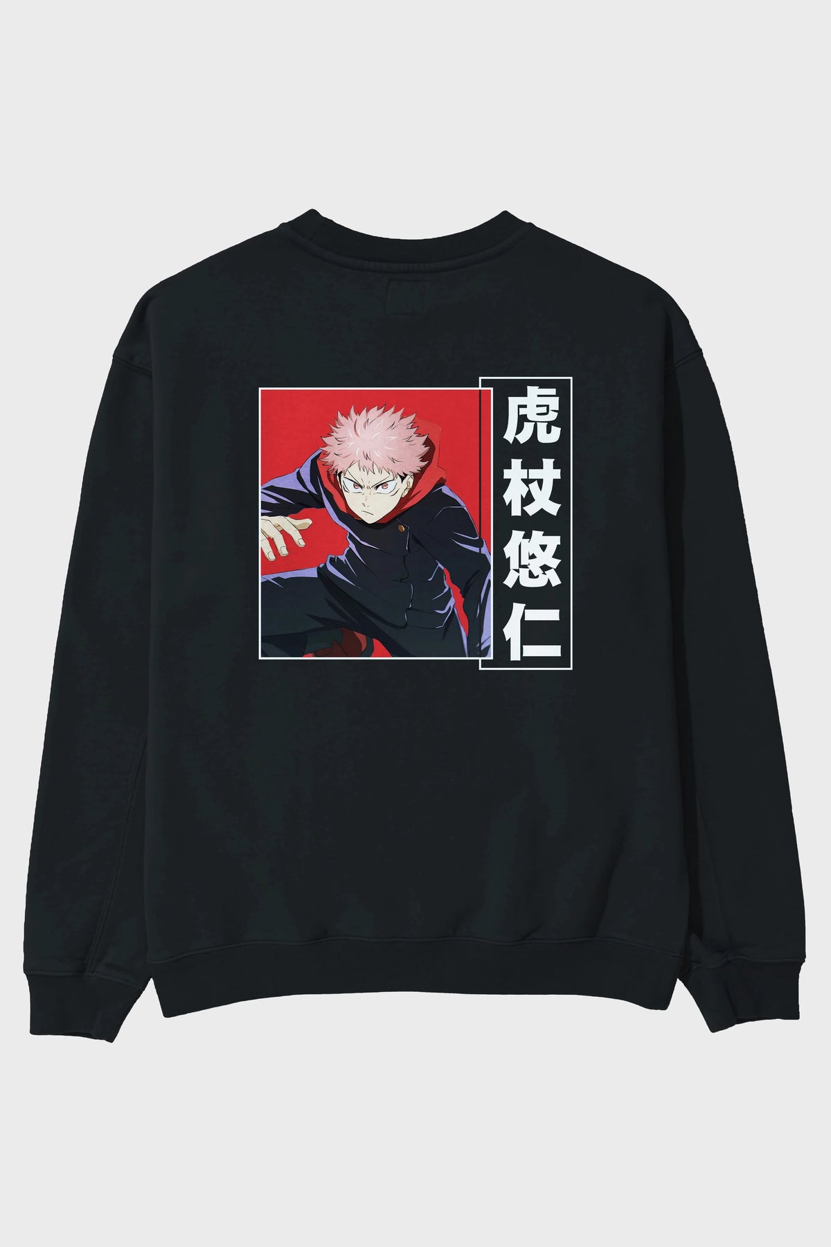 Yuuji Itadori 2 Anime Arka Baskılı Oversize Sweatshirt Erkek Kadın Unisex