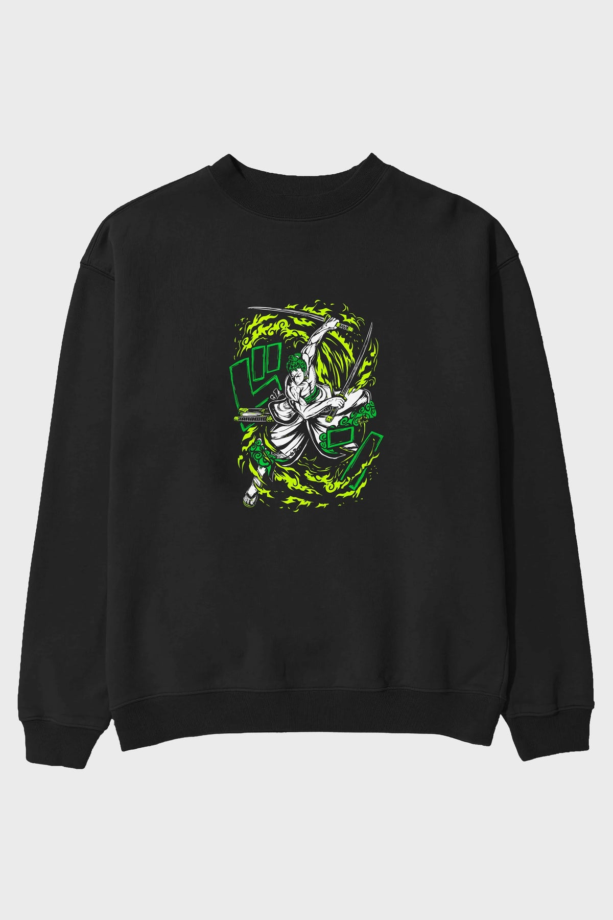 ZORO-ONE PIECE (2) Anime Ön Baskılı Oversize Sweatshirt Erkek Kadın Unisex