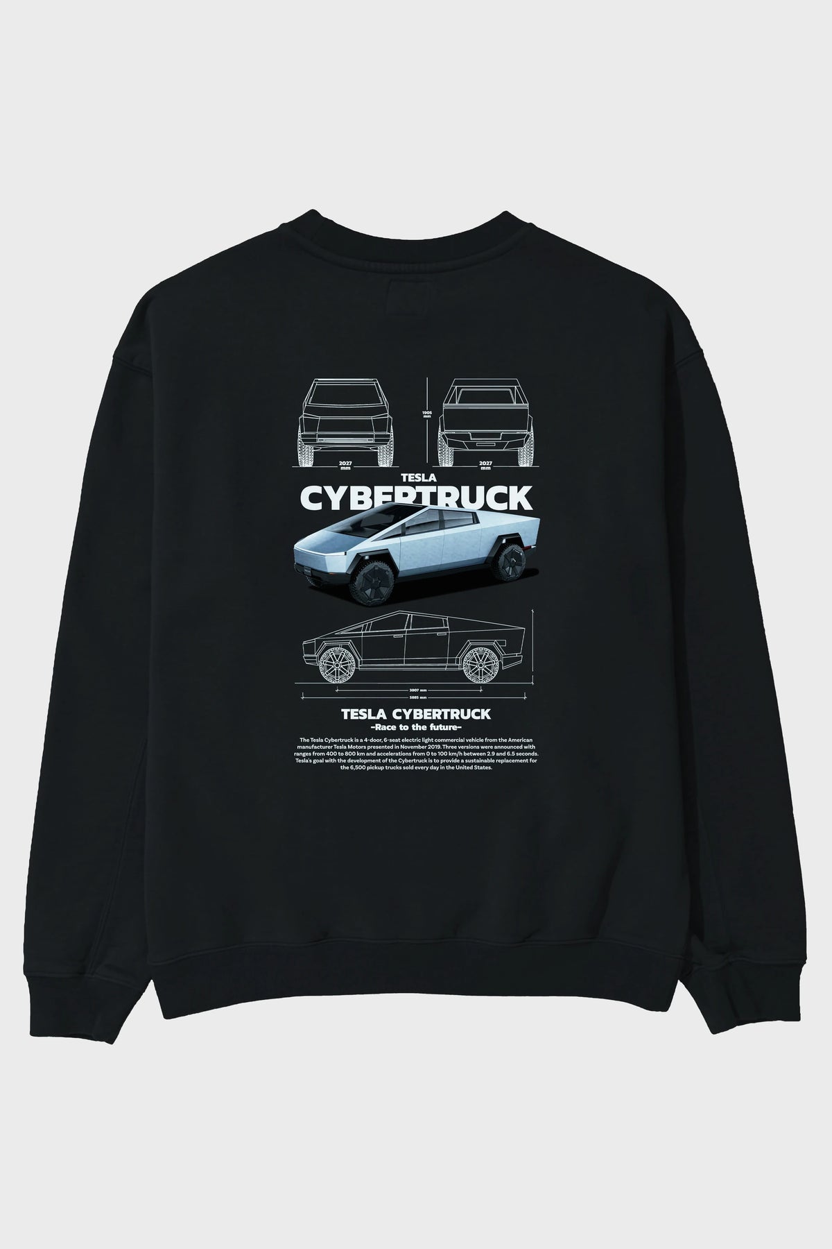 TESLA CYBERTRUCK Arka Baskılı Anime Oversize Sweatshirt Erkek Kadın Unisex