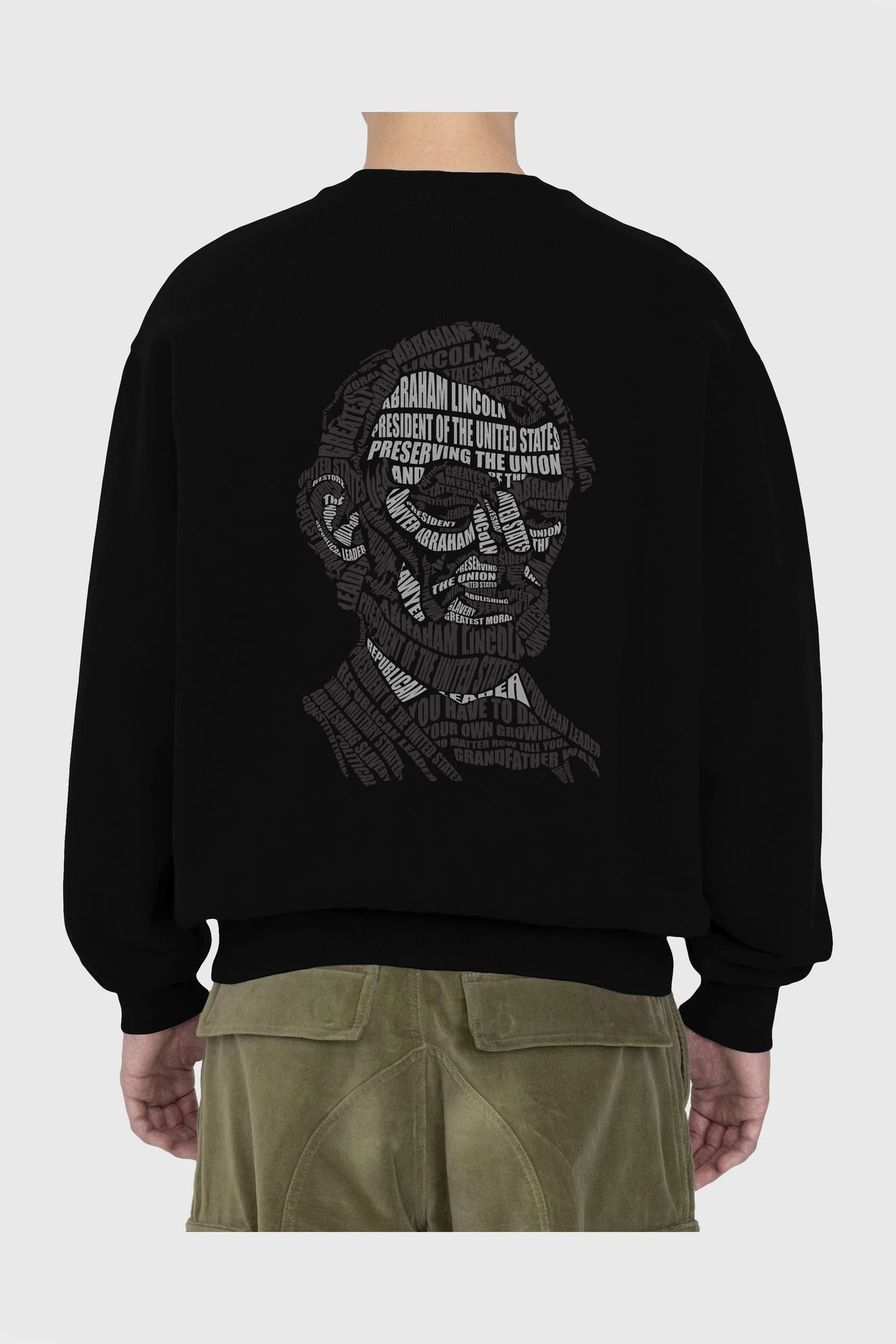 Abraham Lincoln Calligram Arka Baskılı Oversize Sweatshirt Erkek Kadın Unisex