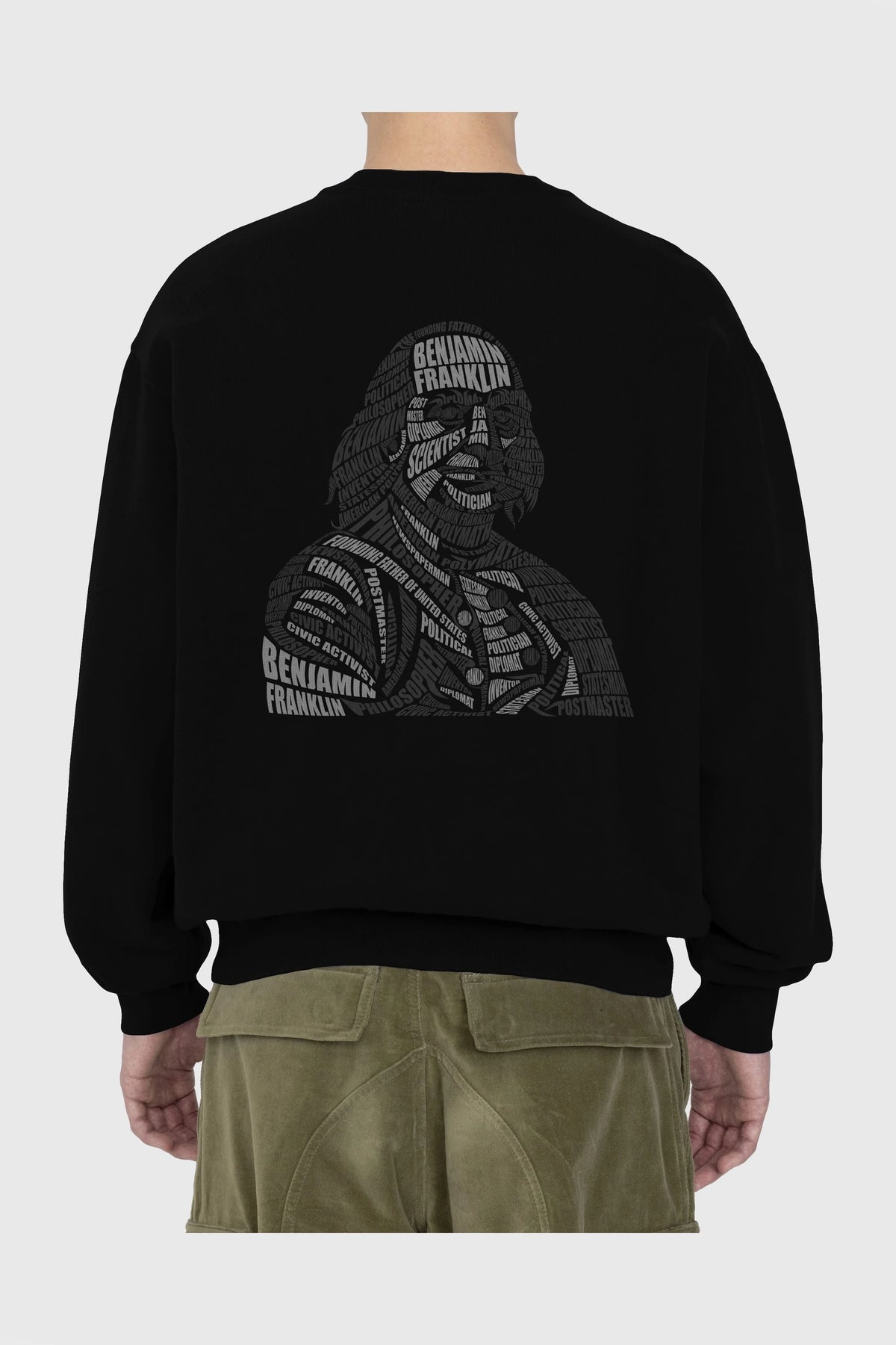 Benjamin Franklin Calligram Arka Baskılı Oversize Sweatshirt Erkek Kadın Unisex