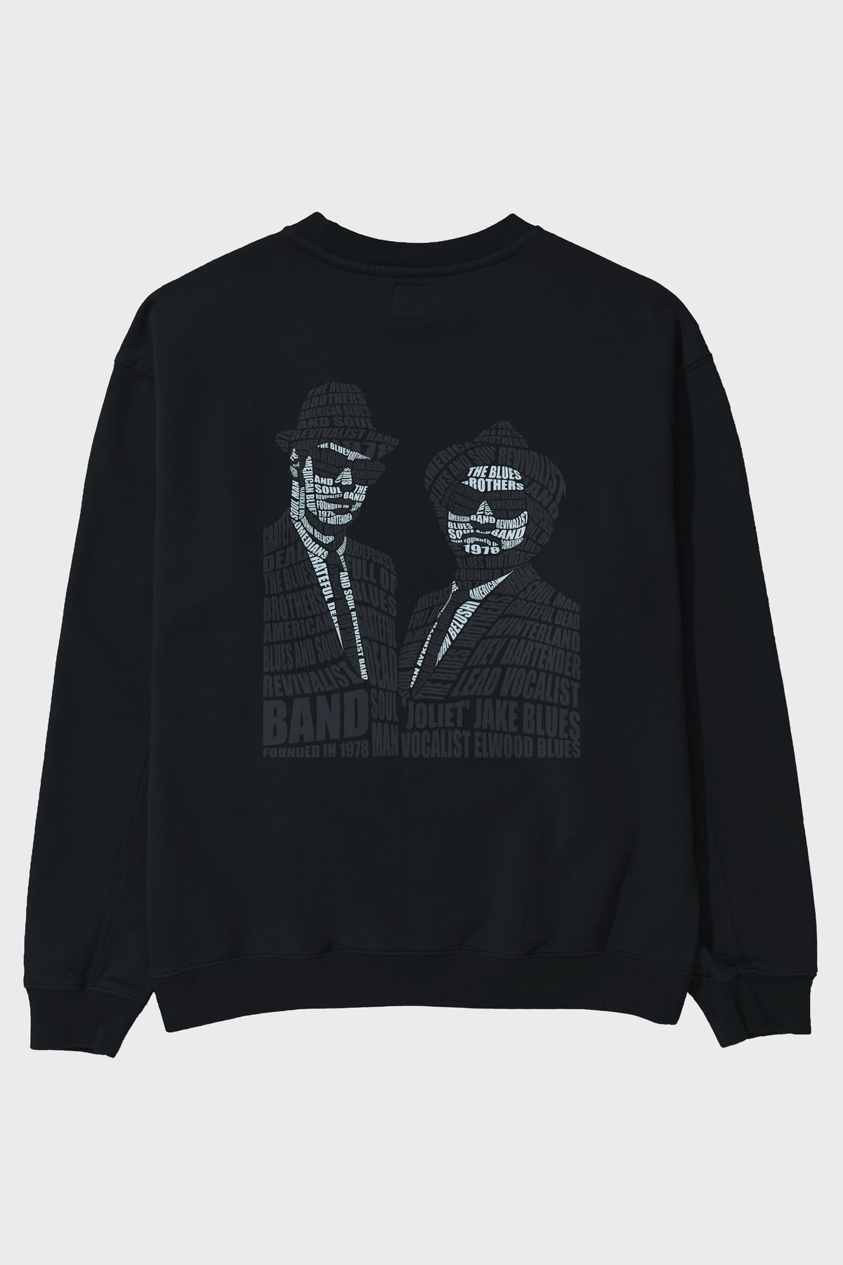 Blues Brothers Calligram Arka Baskılı Oversize Sweatshirt Erkek Kadın Unisex