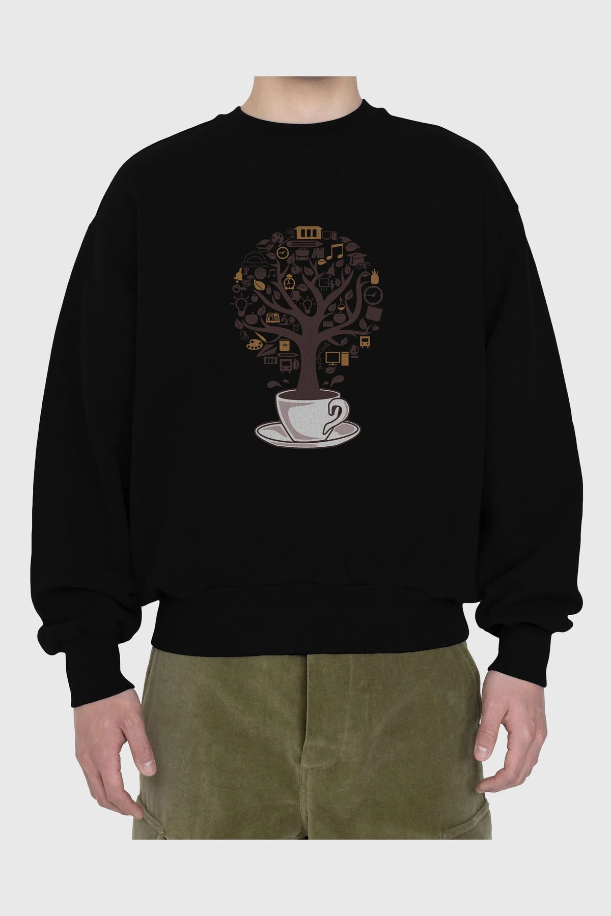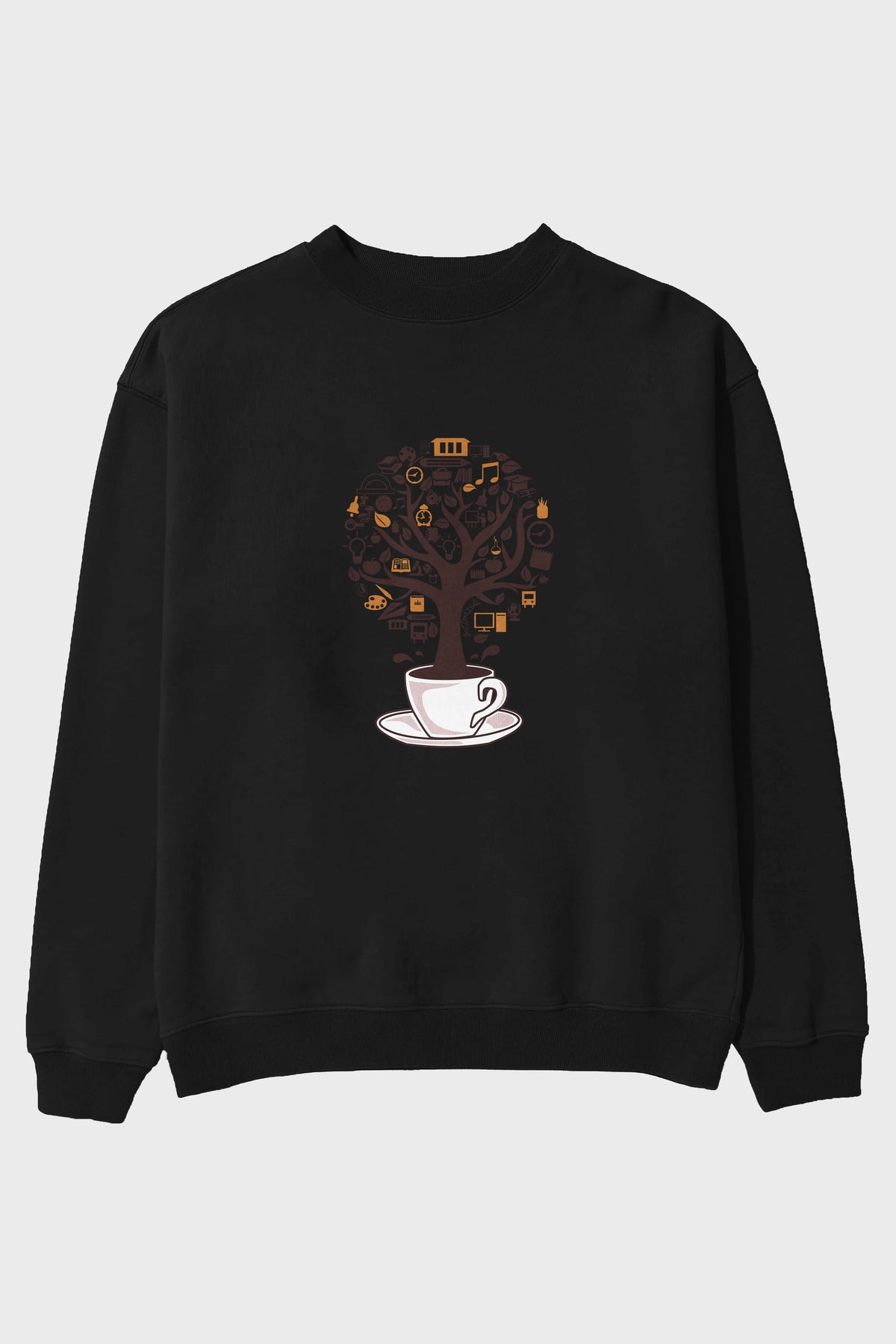 Coffee Tree Ön Baskılı Oversize Sweatshirt Erkek Kadın Unisex